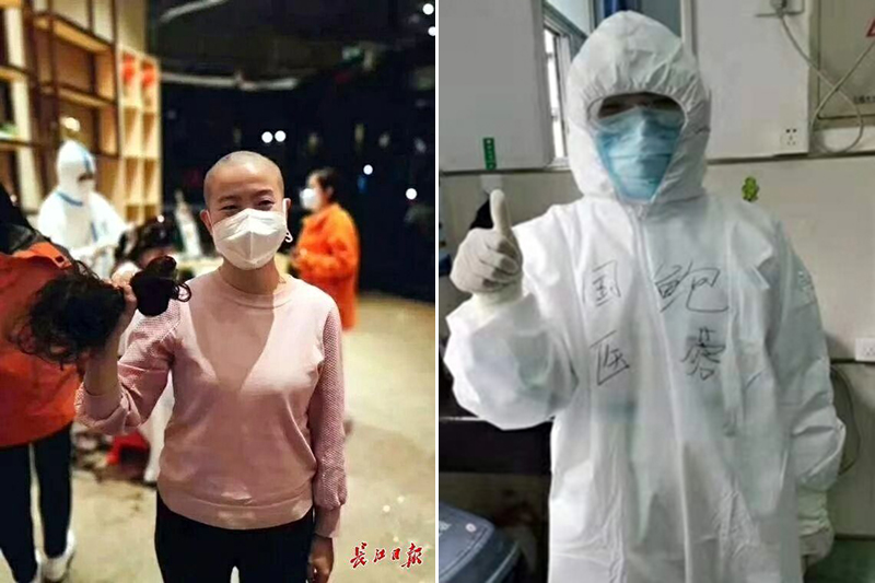 鮑蓉:抗疫阻擊號令起,斬青絲,立壯志。