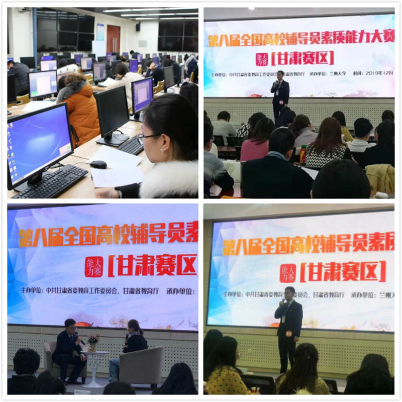 2019年12月26日,第八屆全國高校輔導員素質能力大賽(甘肅賽區(qū))在蘭州大學隆重開幕,全省49所高校的62名輔導員參加了比賽,學院組建了觀摩團全程觀看學習了比賽。我院推選參賽的輔導員朱建偉老師榮獲三等獎,展示了扎實的理論功底、良好的精神風貌和精湛的職業(yè)能力。