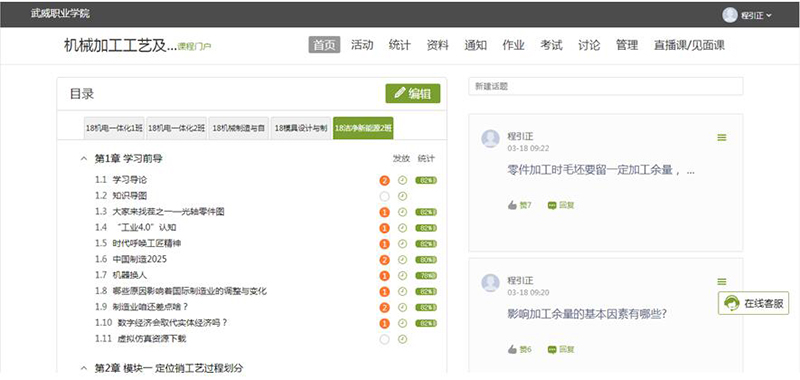 二是課程資料上傳,根據(jù)學(xué)校要求對各門課程的大綱、進(jìn)度、課件、電子版教材等教學(xué)資料進(jìn)行上傳,保證學(xué)生了解課程概況,輔助學(xué)生學(xué)習(xí)。