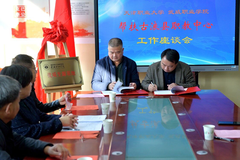 對(duì)接會(huì)上,趙明為古浪職教中心頒授“優(yōu)質(zhì)生源基地”牌匾,簡(jiǎn)要介紹了學(xué)院近年來取得的重要辦學(xué)成果。他表示,學(xué)院今年顯著加強(qiáng)了同古浪職教中心的合作力度,今后還要擴(kuò)大合作培養(yǎng)專業(yè),全方位深化合作關(guān)系,共同培養(yǎng)職業(yè)技能人才。他強(qiáng)調(diào),通過兩校的合作辦學(xué),我們要取長(zhǎng)補(bǔ)短,促進(jìn)中高職貫通培養(yǎng)大力發(fā)展。會(huì)上,王守云同古浪職教中心校領(lǐng)導(dǎo)簽署了“2020年中高職貫通培養(yǎng)辦學(xué)合作協(xié)議”。