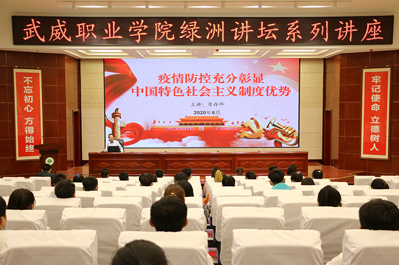 6月9日,武威職業(yè)學(xué)院“綠洲講壇”第33期在學(xué)院菁英廳舉行,學(xué)院黨委副書記翟存祥教授作了題為《疫情防控充分彰顯中國(guó)特色社會(huì)主義制度優(yōu)勢(shì)》的講座。中科低碳新能源技術(shù)學(xué)院師生代表共150余人參加了報(bào)告會(huì)。