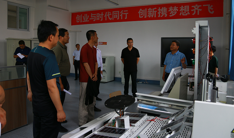 趙明代表全院師生對調(diào)研組到訪學院表示歡迎,并向調(diào)研組詳細介紹了學院建設(shè)發(fā)展、學科建設(shè)、師資配備、人才引進,招生就業(yè),合作辦學等情況。調(diào)研組實地考察了創(chuàng)新創(chuàng)業(yè)中心,熱工實驗室、電氣綜合實驗室、光伏發(fā)電系統(tǒng)實驗室、光伏發(fā)電系統(tǒng)仿真與測試實驗室、光伏器件生產(chǎn)實驗室、STC高性能單傳機實驗室和醫(yī)學實驗實訓室、生命科技館、心肺復蘇練習室、口腔技工室等地,詳細了解了學院專業(yè)設(shè)置、合作辦學及發(fā)展前景等。
