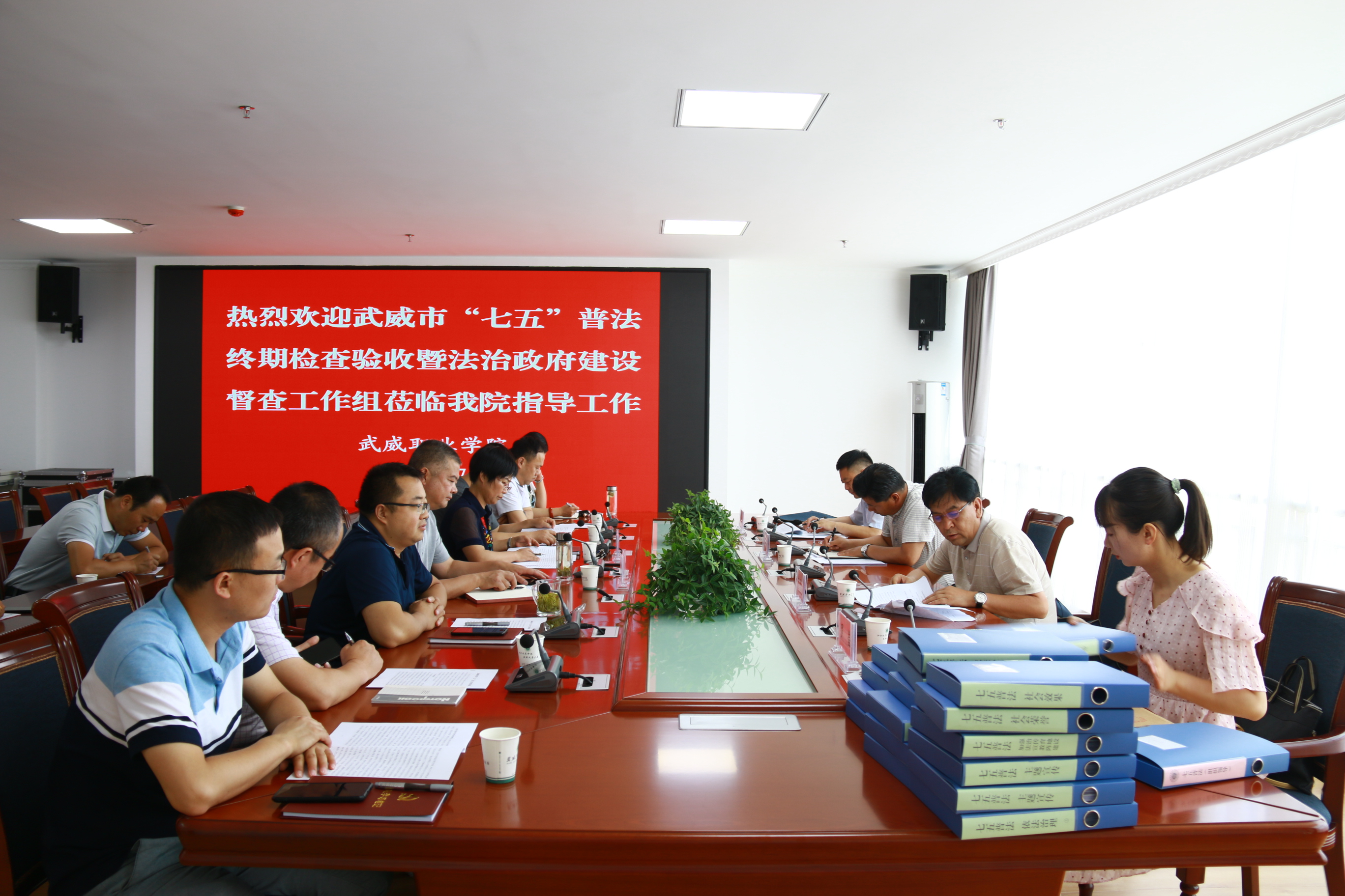 7月7日上午,武威市“七五”普法終期檢查驗(yàn)收第五督察組成員、武威市委宣傳部副調(diào)研員韋國富,市司法局黨組成員、副局長傅瑞川,市公共法律服務(wù)中心主任劉文元,市司法局組織人事科科員羅瑩深入我院對(duì)“七五”普法工作開展情況和法治政府建設(shè)工作進(jìn)行了終期驗(yàn)收督查。學(xué)院黨委委員、副院長何毅、王守云,相關(guān)部門負(fù)責(zé)人參加檢查驗(yàn)收。