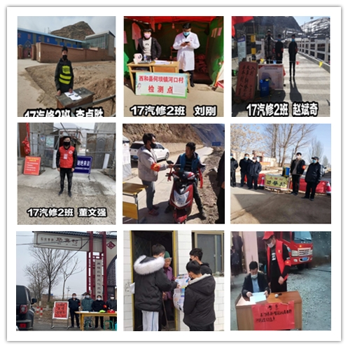 劉忠亮,郭進(jìn)軍均為2017級(jí)汽修3班學(xué)生,2019年1月30日起,在當(dāng)?shù)匦姓灏才畔?,到村口?zhí)行封村任務(wù),對(duì)外來(lái)人員詢問(wèn)來(lái)歷,對(duì)出入人員進(jìn)行登記,對(duì)于本村人員進(jìn)行體溫測(cè)量記錄。