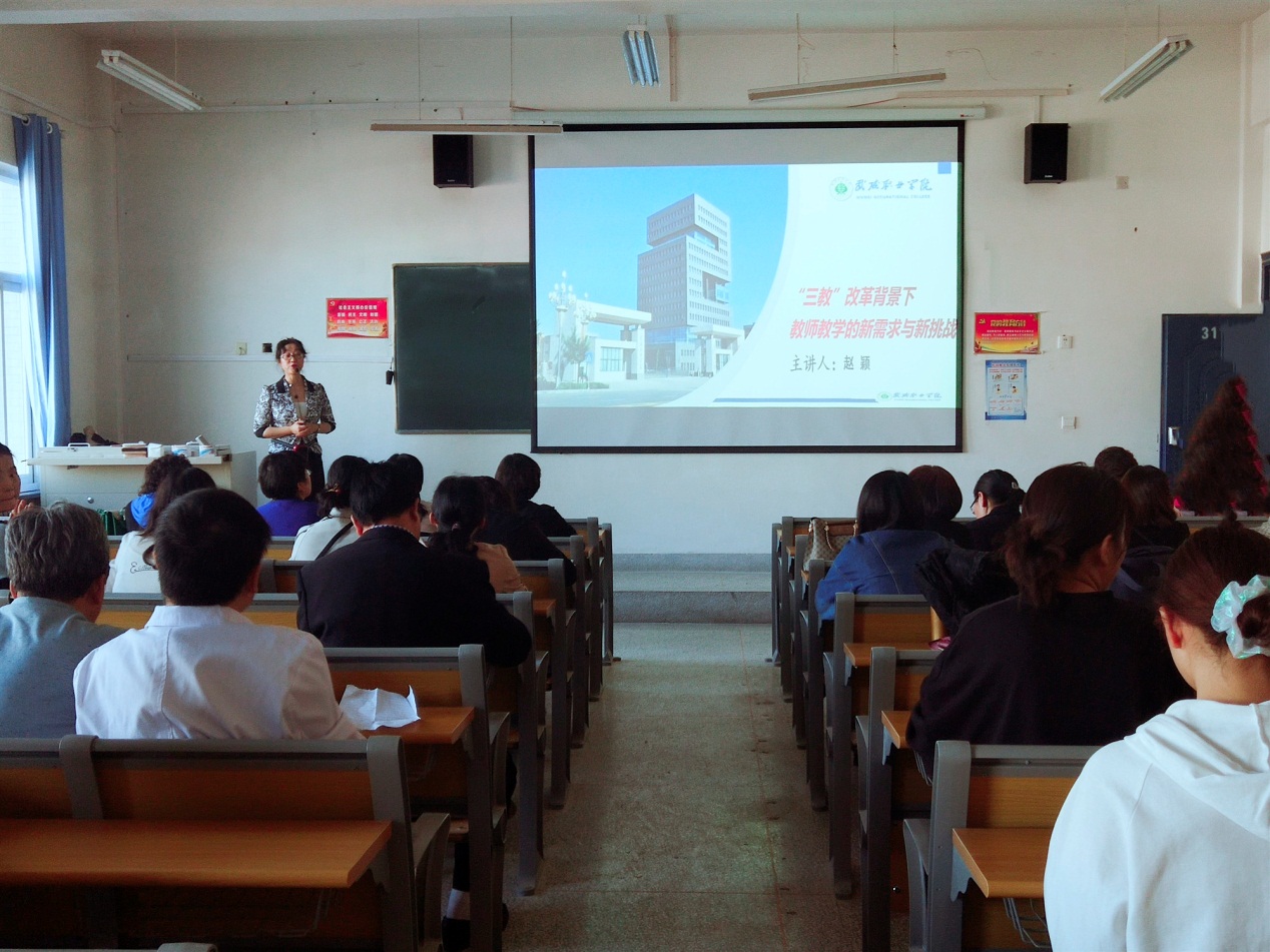 赴揚州參加學習的護理系基礎(chǔ)教研室教師趙穎就8月16日至22日期間的學習內(nèi)容向大家作了詳細匯報。此次匯報的內(nèi)容主要包括題目解析和“三教”改革的對策與舉措兩大部分。趙穎借助PPT,通過生動的語言,詳實的例子,結(jié)合我系實際情況,分享交流有關(guān)《“三教”改革背景下教師教學的新需求與新挑戰(zhàn)》的學習內(nèi)容,傳遞了職業(yè)教育改革和發(fā)展信息化發(fā)展的方向,介紹了“三教”改革背景下教師教育教學面對的新要求、新挑戰(zhàn)以及教師如何應(yīng)對這些挑戰(zhàn)并將自己的學習心得體會與大家作了分享。