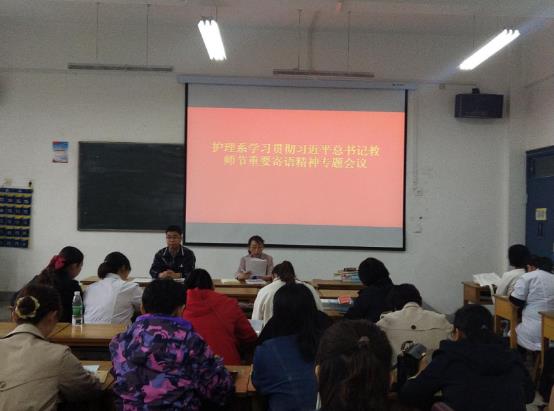 會上,護理系主任韓曉萍領(lǐng)學(xué)了《習(xí)近平總書記教育重要論述講義》,重溫了總書記教師節(jié)重要寄語及精神。她指出,全體教職員工要牢記習(xí)近平總書記“不忘立德樹人初心,牢記為黨育人、為國育才使命”的責(zé)任擔(dān)當,積極探索,在教書育人的崗位上不斷作出新的重大貢獻。她要求,每位教職員工撰寫一篇學(xué)習(xí)心得體會,提高認識,牢記使命,立足實際,為黨和國家培育社會主義建設(shè)者和接班人。