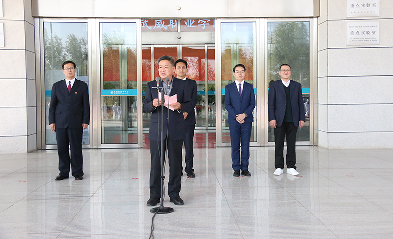 揭牌儀式上,趙明介紹學(xué)院教育教學(xué)改革發(fā)展所取得的成效,強(qiáng)調(diào)職業(yè)教育和普通教育是兩種不同的教育類型,具有同等重要地位,全面落實(shí)《國家職業(yè)教育改革實(shí)施方案》和“技能甘肅”部署要求,推動學(xué)院“雙高”建設(shè),爭創(chuàng)高職應(yīng)用型本科院校,離不開高水平的合作醫(yī)院,離不開高水平的師資隊(duì)伍。教師實(shí)踐基地的揭牌成立,將會進(jìn)一步加強(qiáng)雙方的合作交流,實(shí)現(xiàn)資源共享、優(yōu)勢互補(bǔ)、共同發(fā)展,我們要積極探索和創(chuàng)新基地育人方式,使之成為“雙師型”教師培養(yǎng)的搖籃。