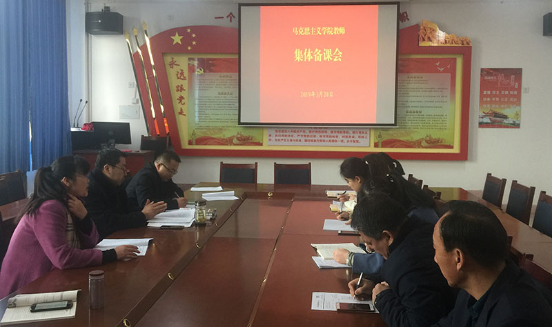 為深入學(xué)習(xí)習(xí)近平在學(xué)校思想政治理論課教師座談會上的講話精神,提高我院思政課教學(xué)質(zhì)量和水平,3月20日下午,馬克思主義學(xué)院在勵勤樓209會議室召開了《毛澤東思想和中國特色社會主義理論體系概論》集體備課會,思政教研部主任劉心主持,馬克思主義學(xué)院副院長胡靜峰就上好思政課提出要求,思政教研部全體專兼職教師參加了會議。