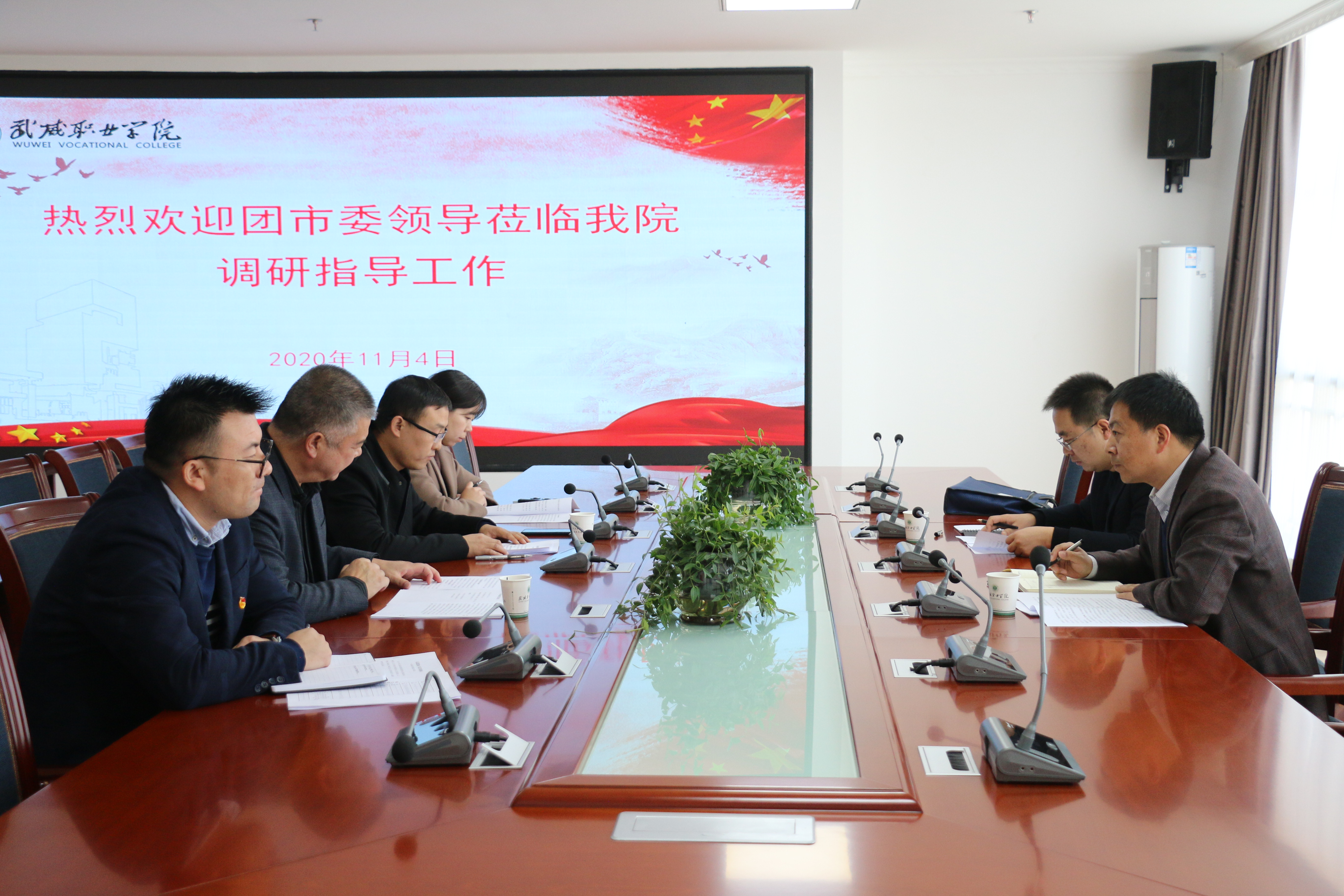 11月4日上午,團(tuán)市委書記馬維斌一行來我院調(diào)研共青團(tuán)工作。學(xué)院黨委委員、副院長王守云陪同調(diào)研,團(tuán)委工作人員參與調(diào)研。