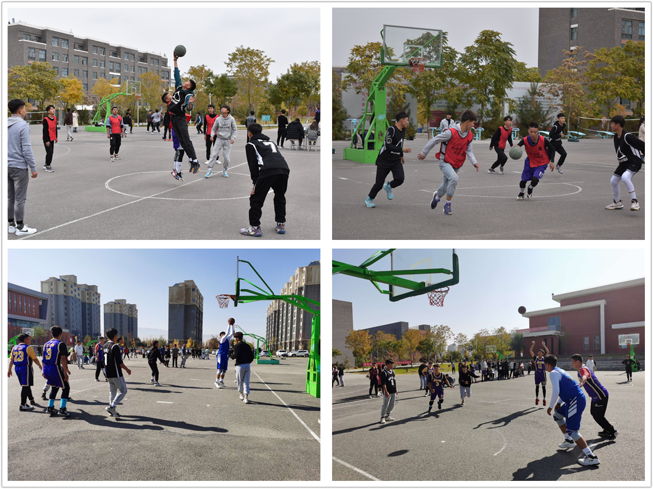 籃球比賽共有12支隊(duì)伍參加比賽,在賽場上運(yùn)動(dòng)員積極拼搏、全力以赴。場下的同學(xué)們努力為運(yùn)動(dòng)員吶喊助威,為運(yùn)動(dòng)員們注入了強(qiáng)大的精神動(dòng)力。