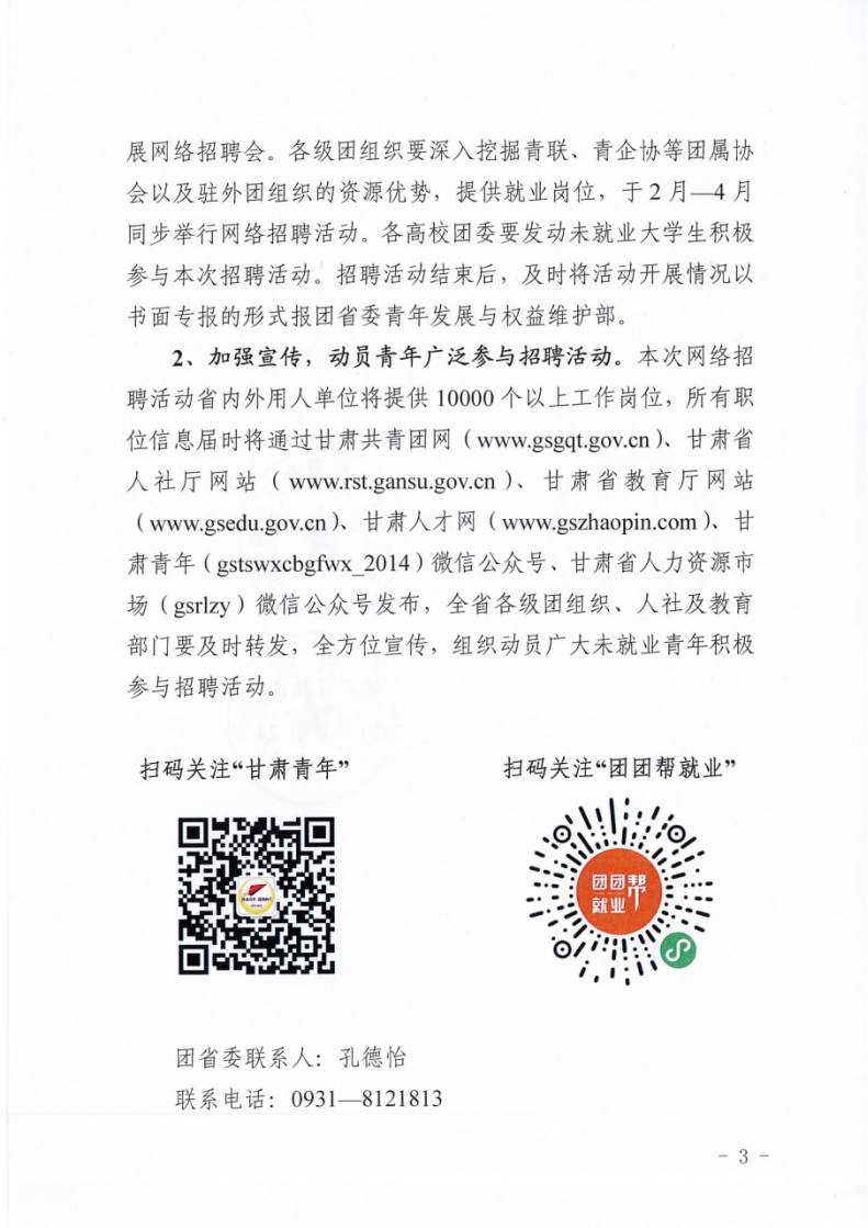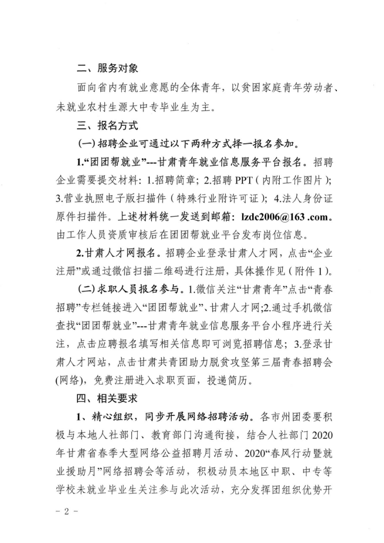 關(guān)于組織開展甘肅共青團助力脫貧攻堅第三屆青春招聘會(網(wǎng)絡)活動的通知