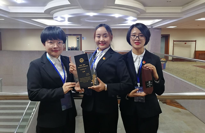 在上午進(jìn)行的初賽中,非法學(xué)組共有13個(gè)學(xué)校參加,前八名進(jìn)入決賽。我院三位選手在與兄弟學(xué)校的激烈角逐下,脫穎而出,以小組賽第二名、初賽第四名的成績(jī)輕松進(jìn)入決賽。下午的決賽中,面對(duì)更強(qiáng)大的對(duì)手,面對(duì)評(píng)委老師,三位選手始終面帶笑容、自信滿(mǎn)滿(mǎn)、密切配合,憑自己的努力、實(shí)力,發(fā)揮出她們的最好水平,個(gè)人答題毫無(wú)破綻、搶答過(guò)程頻頻得手、個(gè)人論述聲情并茂,獲得了評(píng)委的高度贊賞。經(jīng)過(guò)激烈的比拼,我院代表隊(duì)一路披荊斬棘,過(guò)關(guān)斬將,最終獲得非法學(xué)組金獎(jiǎng)(第一名),學(xué)院獲優(yōu)秀組織獎(jiǎng),羅茜獲得個(gè)人優(yōu)秀選手獎(jiǎng)。