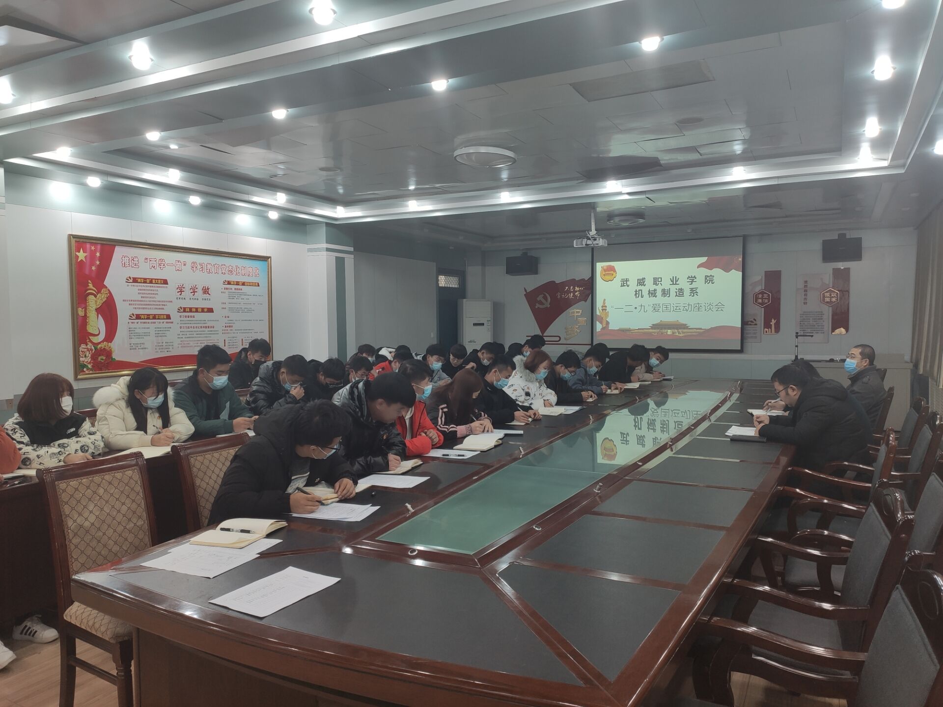 為了紀(jì)念“一二·九”愛(ài)國(guó)運(yùn)動(dòng),我系于2020年12月9日,在博學(xué)樓二樓黨員活動(dòng)室召開了武威職業(yè)學(xué)院機(jī)械制造系“一二·九”愛(ài)國(guó)運(yùn)動(dòng)座談會(huì),參會(huì)人員有大二團(tuán)學(xué)委員會(huì)全體成員以及18級(jí)、19級(jí)、20級(jí)各班團(tuán)支書。