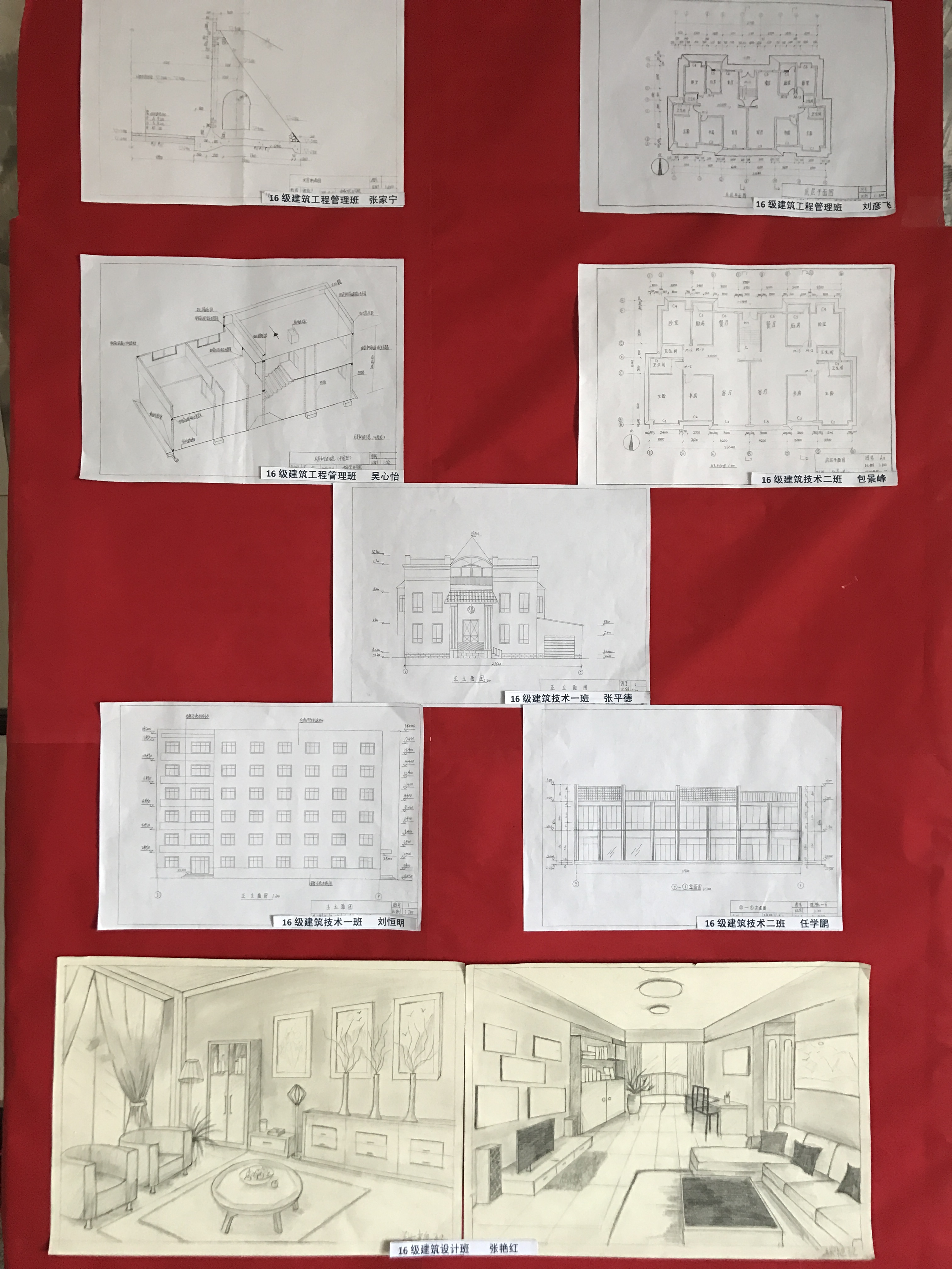 本次大賽重點(diǎn)由16級(jí)各專業(yè)新生參加,歷時(shí)一個(gè)月。經(jīng)過前期精心的安排,學(xué)生自選圖幅,作品內(nèi)容以常見的建筑形式和學(xué)院樓宇的外部造型為題材,重點(diǎn)反映學(xué)生對(duì)建筑物平面、立面等專業(yè)繪圖知識(shí)的理解程度。截止展出前共收到30余件參賽作品,經(jīng)過評(píng)審老師認(rèn)真、嚴(yán)格的審查,最終展出17幅。