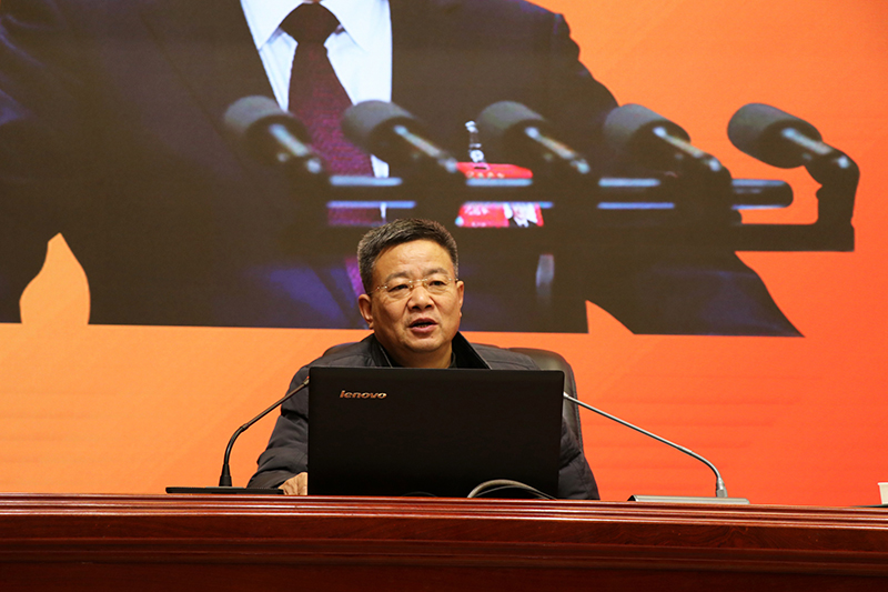 黨委書(shū)記、院長(zhǎng)趙明為學(xué)院黨員干部和師生宣講黨的十九屆五中全會(huì)精神