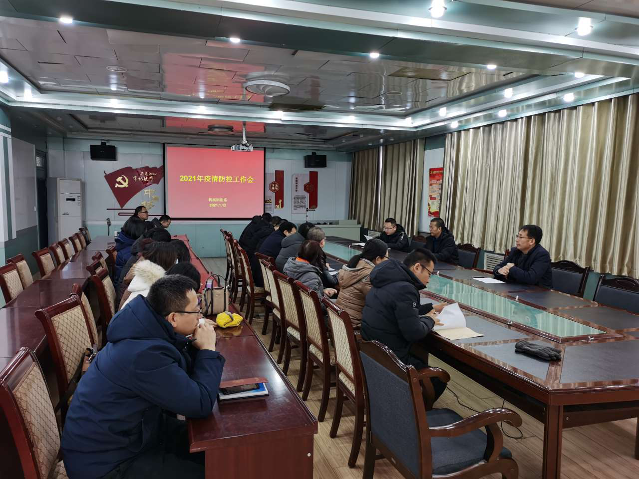 根據(jù)《武威職業(yè)學(xué)院2021年寒假春節(jié)開(kāi)學(xué)前新冠肺炎疫情防控應(yīng)急處置預(yù)案》和《關(guān)于進(jìn)一步加強(qiáng)寒假期間學(xué)生疫情防控工作的通知》通知要求,1月12日,機(jī)械制造系在博學(xué)樓黨員活動(dòng)室召開(kāi)疫情防控工作專(zhuān)題會(huì)議,傳達(dá)省市、學(xué)院疫情防控要求,部署寒假師生管理和疫情防控工作。