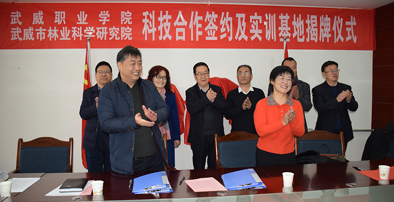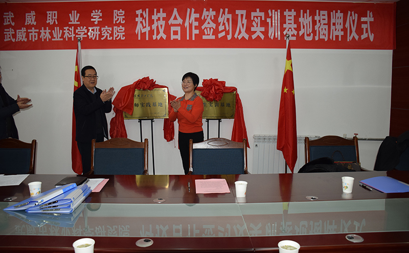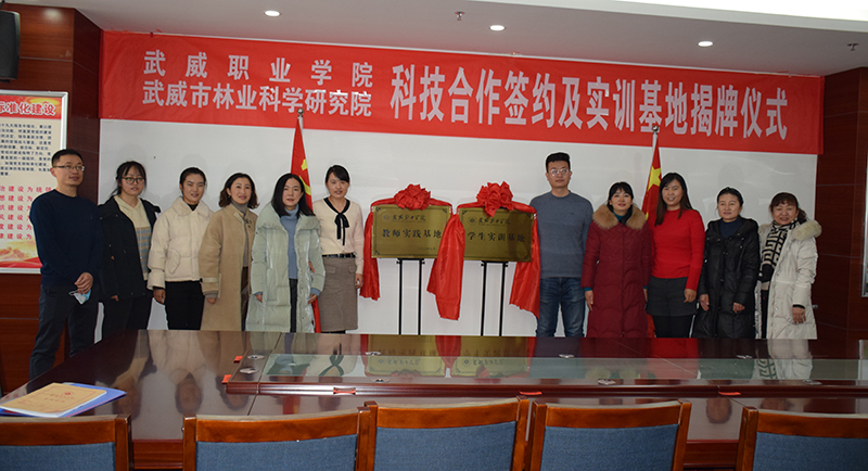 為了全面落實(shí)《教育部、甘肅省人民政府關(guān)于整省推進(jìn)職業(yè)教育發(fā)展打造“技能甘肅”的意見(jiàn)》和“2020年全國(guó)職業(yè)教育教師企業(yè)實(shí)踐基地推進(jìn)會(huì)”等會(huì)議精神,進(jìn)一步推動(dòng)鄉(xiāng)村振興和創(chuàng)新驅(qū)動(dòng)戰(zhàn)略的實(shí)施,大力推進(jìn)生態(tài)文明建設(shè),全面提升教師的科技創(chuàng)新能力、實(shí)踐教學(xué)水平和學(xué)生的職業(yè)技能,為我院“雙高”建設(shè)添磚加瓦,1月25日上午,學(xué)院與武威市林業(yè)科學(xué)研究院舉行了科技合作協(xié)議簽約暨教師實(shí)踐基地和學(xué)生實(shí)訓(xùn)基地揭牌儀式。武威市林業(yè)和草原局黨組書(shū)記、局長(zhǎng)戴繼春,武威市林業(yè)科學(xué)研究院院長(zhǎng)張勤德,副院長(zhǎng)張強(qiáng)威、張金學(xué),學(xué)院副院長(zhǎng)何毅、教務(wù)處處長(zhǎng)仲生仁、招生就業(yè)處處長(zhǎng)蔡柱山、現(xiàn)代農(nóng)業(yè)技術(shù)系黨總支書(shū)記晏素珍、林科院專(zhuān)業(yè)技術(shù)人員代表和現(xiàn)代農(nóng)業(yè)技術(shù)系教師代表等出席了簽約暨揭牌儀式,林科院副院長(zhǎng)張強(qiáng)威主持儀式。