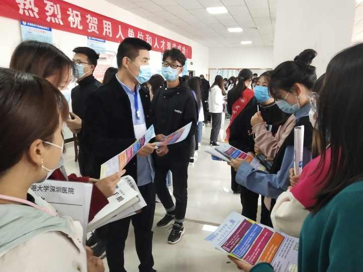 因疫情防控原因,此次招聘會采取“線上+線下”結(jié)合的方式,其中線上有喀什地區(qū)第一人民醫(yī)院、和田地區(qū)人民醫(yī)院、四川省江油市第四人民醫(yī)院、北京醫(yī)百科技有限公司等8家單位參會;線下有新疆新和縣人民醫(yī)院、新疆生產(chǎn)建設(shè)兵團第五師醫(yī)院、新源縣人民醫(yī)院、恒升醫(yī)學科技股份有限公司、武威幸業(yè)養(yǎng)老中心、金昌八冶頤養(yǎng)醫(yī)院、蘭州惠仁堂藥業(yè)有限公司等23家單位參會;共有來自省內(nèi)外的31家醫(yī)療相關(guān)單位參加了本次招聘會,提供了1100多個就業(yè)崗位,基本滿足學院醫(yī)學類專業(yè)畢業(yè)生的就業(yè)需求。