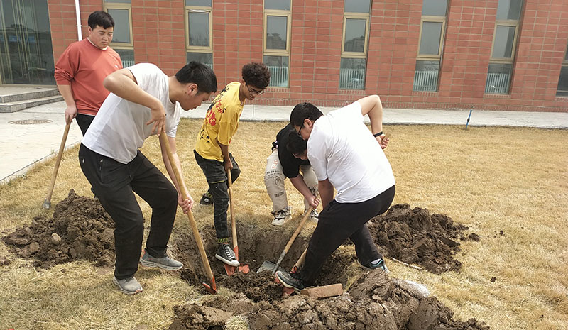 活動中,師生代表熱情高漲、干勁十足,按照專業(yè)人員的植樹指導,三人一組,緊密分工協(xié)作、熱情高漲、干勁十足,揮鍬挖窩、扶苗培土、提桶澆水,道道工序細致認真、有條不紊。經(jīng)過師生代表近四小時的忙碌勞動,三百株新栽的樹苗迎風挺立,為學院增添上一抹“新綠”,也將綠色發(fā)展觀念“種”進每位師生心中。