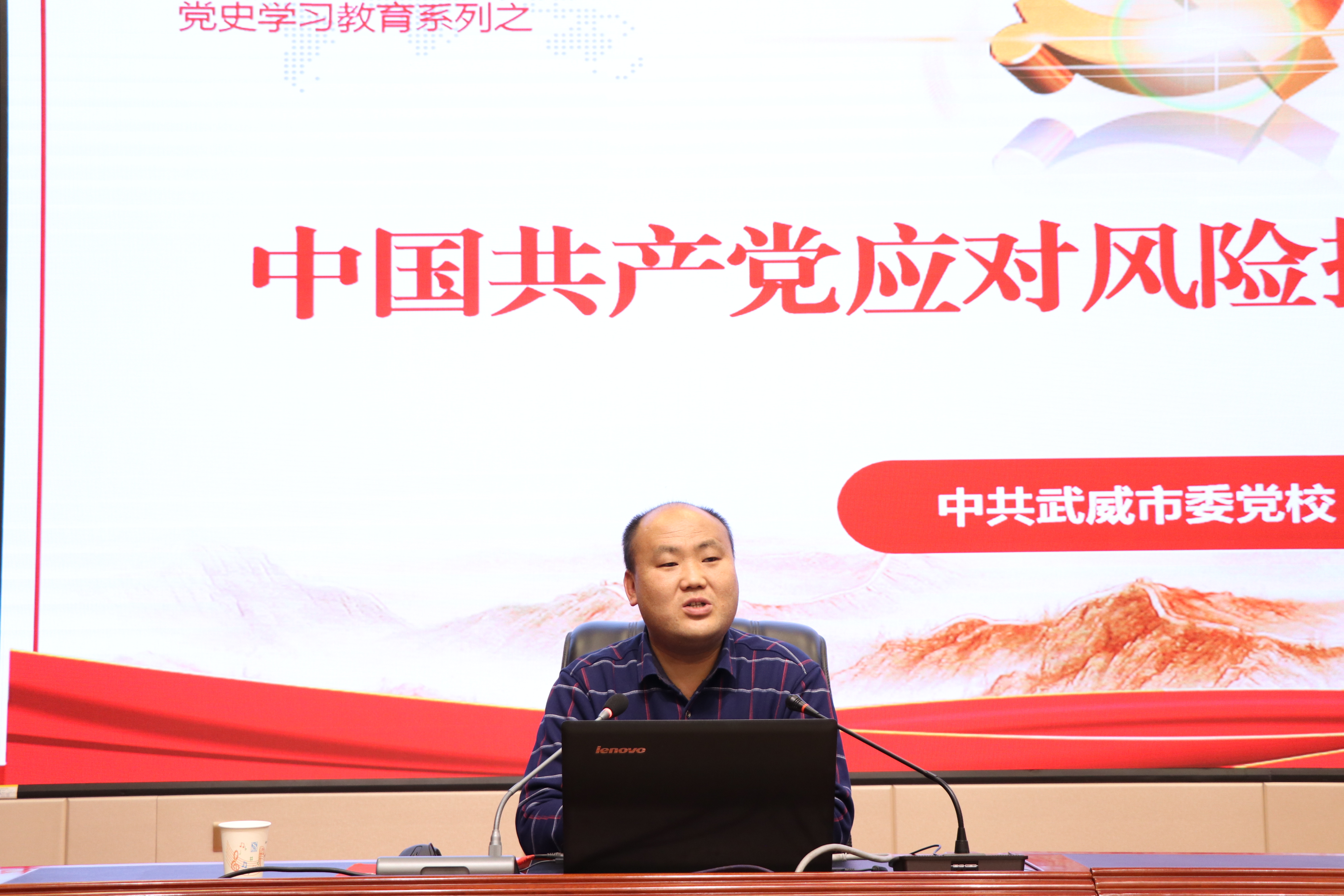 魏樂儀以《中國共產(chǎn)黨應(yīng)對風(fēng)險挑戰(zhàn)的經(jīng)驗啟示》為題,從強(qiáng)國征程、黨史開篇,百年大黨的深沉歷史自覺;危中尋機(jī)、困中破局,黨應(yīng)對風(fēng)險挑戰(zhàn)的歷史進(jìn)程;以史為鏡,以史明志,推進(jìn)偉大歷史偉業(yè)三個方面給參加讀書班的黨員干部和師生作了一場精彩的專題輔導(dǎo)。