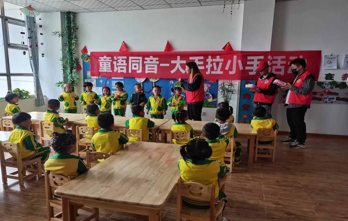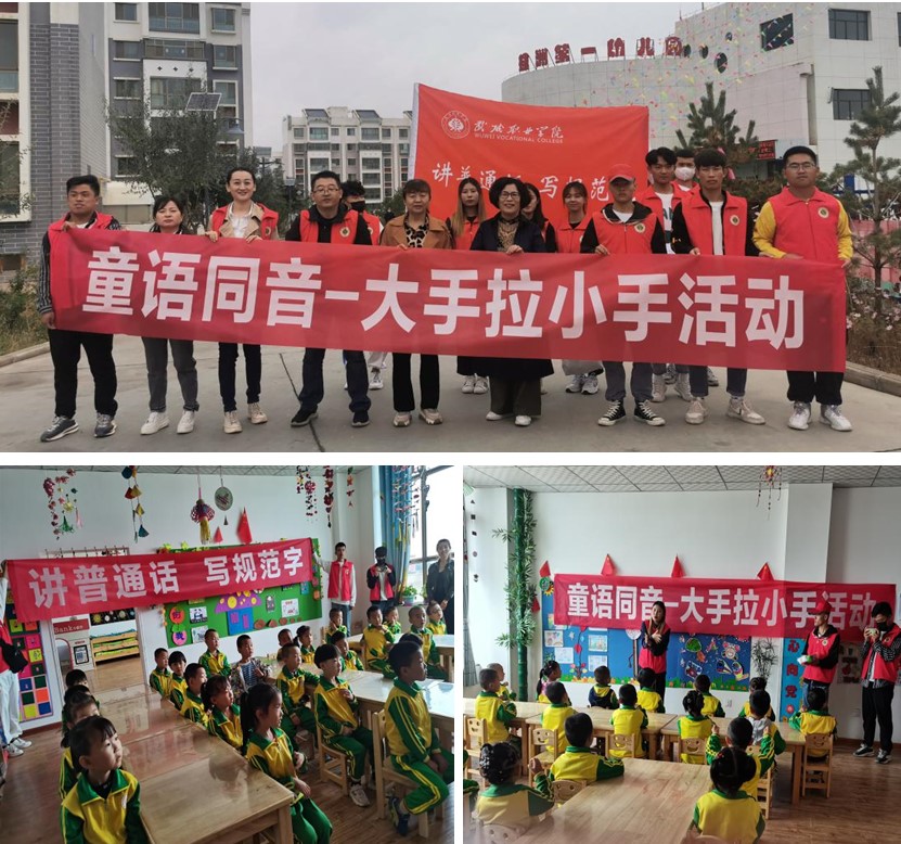 為認(rèn)真貫徹落實(shí)《教育部等九部門關(guān)于開(kāi)展第24屆全國(guó)推廣普通話宣傳周活動(dòng)的通知》(教語(yǔ)用函〔2021〕1號(hào))、《甘肅省語(yǔ)言文字工作委員會(huì)等九部門關(guān)于開(kāi)展第24屆全國(guó)推廣普通話宣傳周活動(dòng)的通知》要求,進(jìn)一步加大國(guó)家通用語(yǔ)言文字推廣力度,9月14日,學(xué)院推普志愿隊(duì)師生在古浪綠洲小鎮(zhèn)第一幼兒園開(kāi)展童語(yǔ)同音-大手拉小手推普活動(dòng),推普志愿隊(duì)詳細(xì)了解小鎮(zhèn)幼兒教師及兒童的普通話普及情況,并與大、中班幼兒進(jìn)行了有趣的互動(dòng)活動(dòng)。