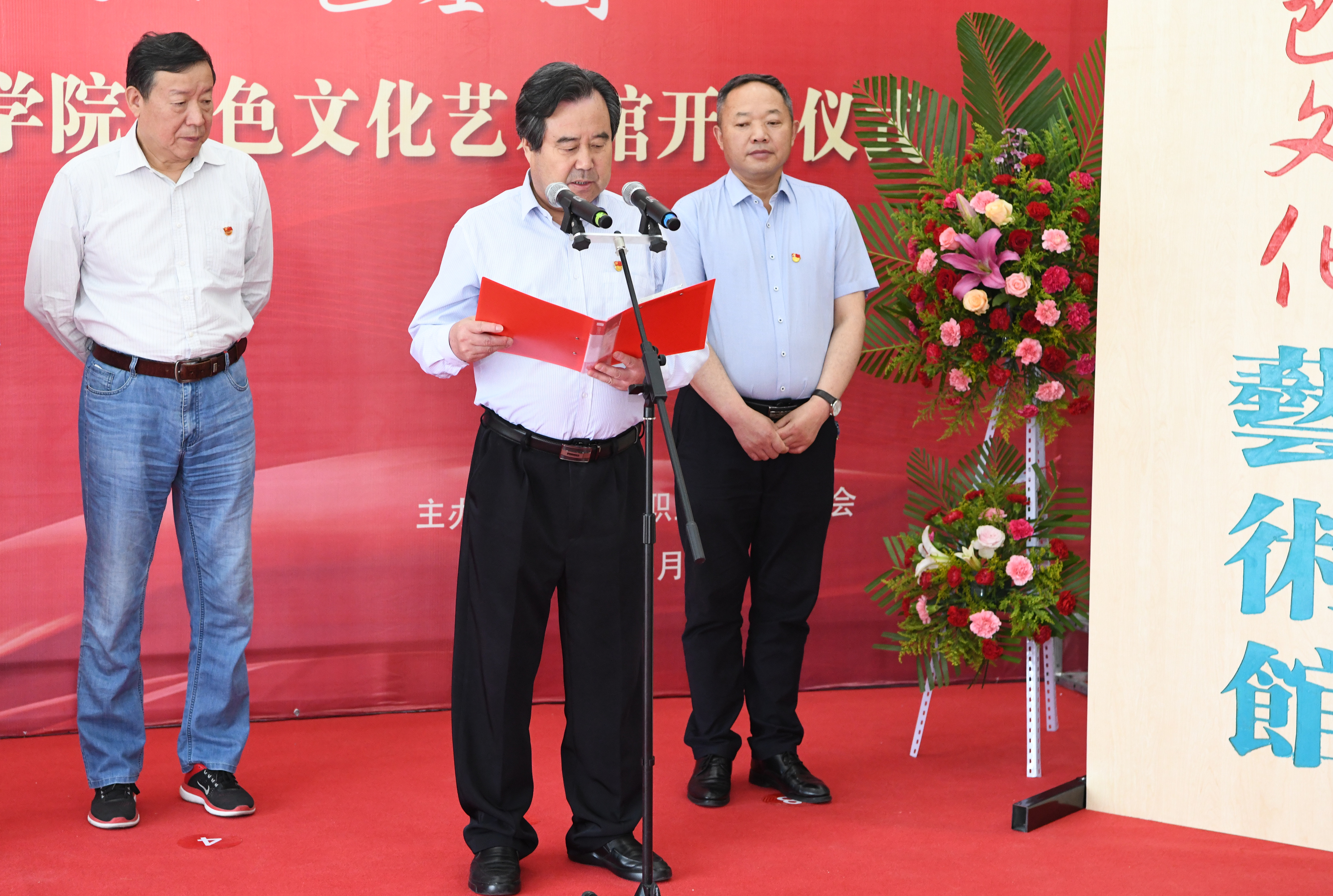 學(xué)院客座教授、涼州區(qū)政協(xié)原副主席王大臣先生在致辭中表示,值此慶祝建黨100周年之際,共同見證武威職業(yè)學(xué)院紅色文化藝術(shù)館開館,心情非常激動(dòng)。武威職業(yè)學(xué)院是國(guó)家骨干高職院校,甘肅省優(yōu)質(zhì)校、“雙高計(jì)劃”建設(shè)院校,發(fā)揮著培育擔(dān)當(dāng)民族復(fù)興大任時(shí)代新人的作用。作為學(xué)院的客座教授,將自己“百年華章·紅色隴原——獻(xiàn)禮建黨一百周年書法展”的143副作品,毫無保留的全部捐贈(zèng)給學(xué)院,共建這個(gè)紅色文化藝術(shù)館,感到非常榮幸。全黨上下正在開展黨史學(xué)習(xí)教育,紅色文化藝術(shù)館的建立,正是武威職業(yè)學(xué)院賡續(xù)紅色血脈、繼承光榮傳統(tǒng),以紅色文化鑄魂育人的生動(dòng)體現(xiàn)。希望老師們、同學(xué)們,能夠通過這些作品感悟紅色精神、汲取奮進(jìn)力量,在新時(shí)代新征程中唱響“立德樹人”的贊歌。