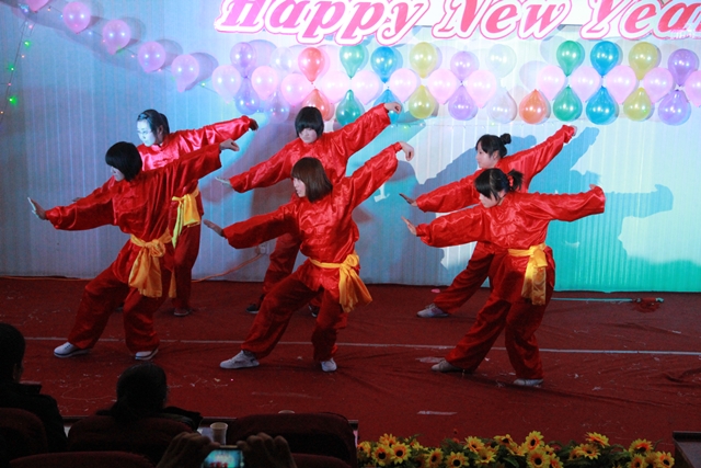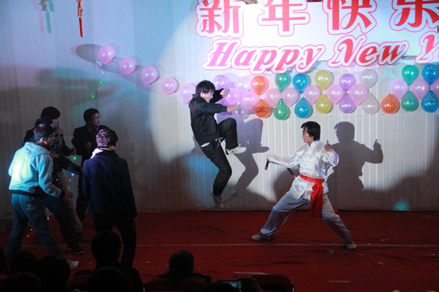 我系趙磊老師的薩克斯獨奏節(jié)奏明朗,富有磁力,優(yōu)美的旋律深深地吸引了全體觀眾。12級光熱班的張新輝,張一凡等同學反串《甄嬛傳》令現場的觀眾捧腹大笑。一首《祝?!返睦收b牽掛了所有觀眾,武術《中國功夫》令得全場驚呼,舞蹈《江南style》的精彩演出吸引了所有人的眼球。最后晚會在《同一首歌》的大合唱中緩緩落幕。