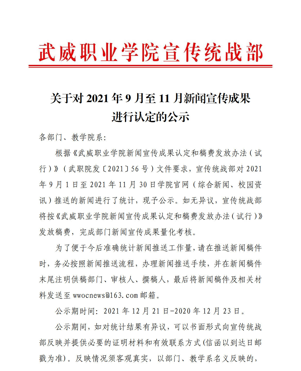 關(guān)于對(duì)2021年9月-11月新聞宣傳成果進(jìn)行認(rèn)定的公示