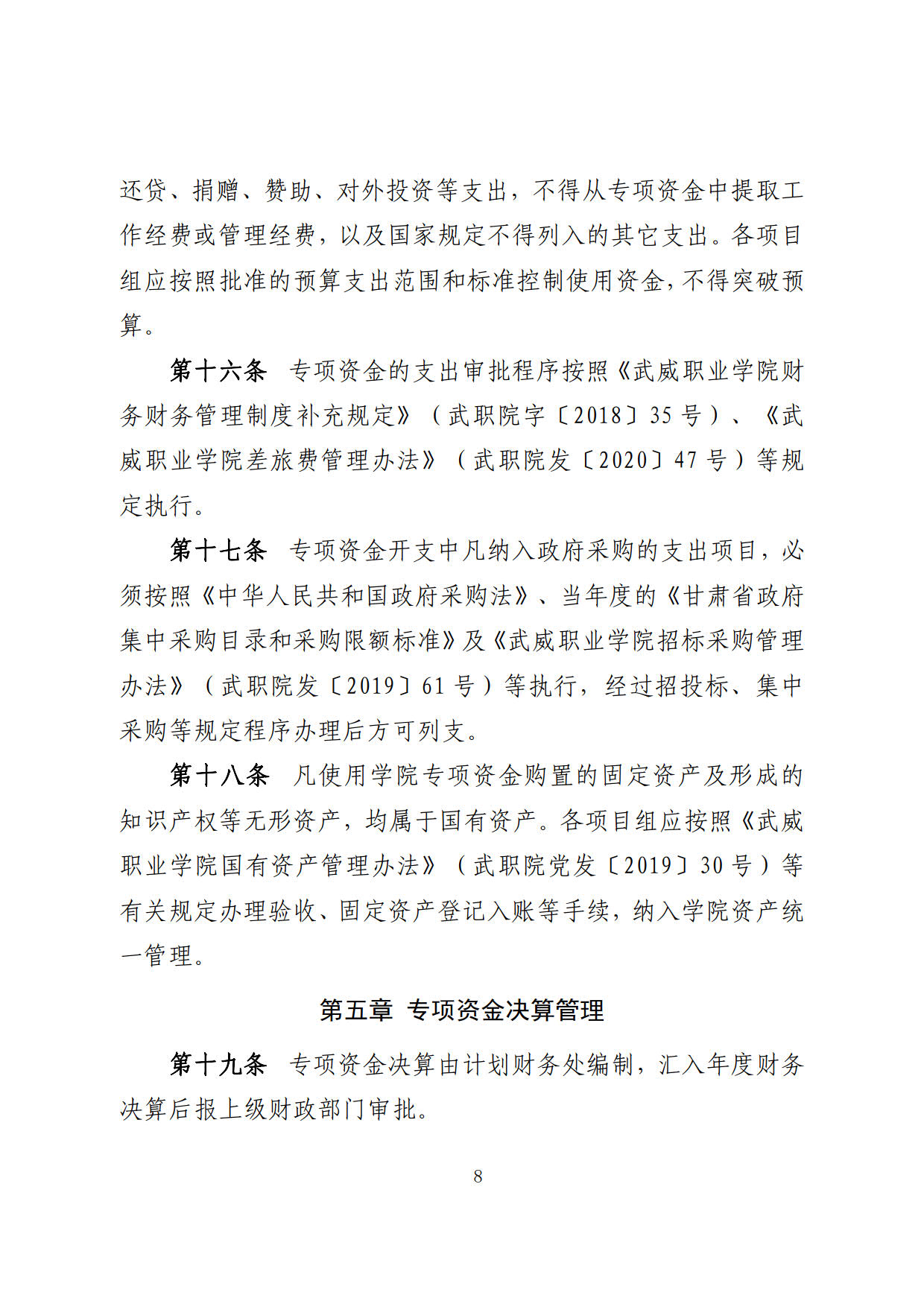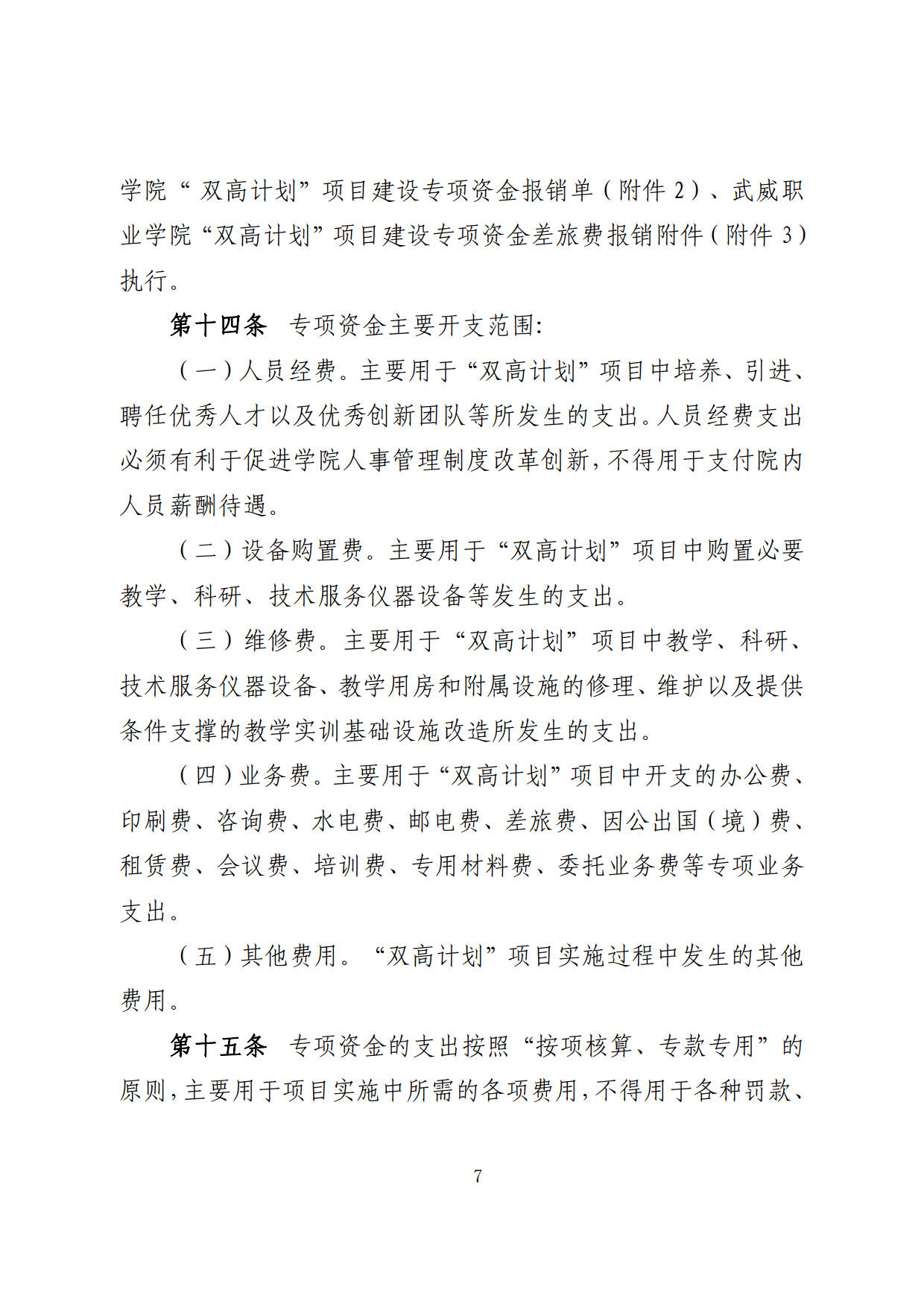 關(guān)于印發(fā)《武威職業(yè)學(xué)院“雙高計(jì)劃”項(xiàng)目建設(shè)專項(xiàng)資金管理辦法》的通知