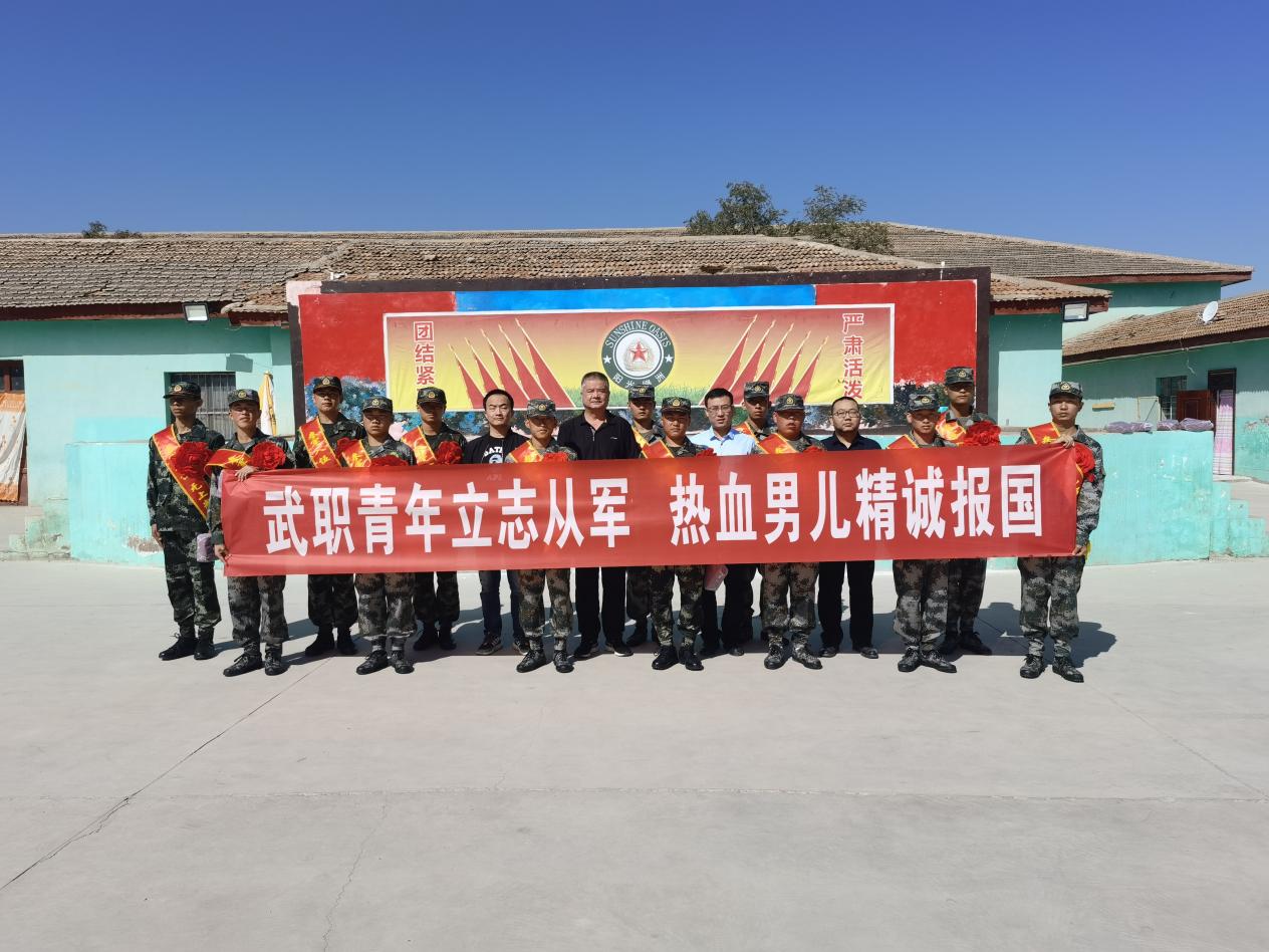 在入伍學(xué)生歡送會(huì)上,學(xué)院領(lǐng)導(dǎo)、涼州區(qū)人武部領(lǐng)導(dǎo)和基地負(fù)責(zé)人共同為入伍學(xué)生披上綬帶、佩戴紅花,并向同學(xué)們贈(zèng)送了紀(jì)念品。王守云在講話中勉勵(lì)同學(xué)們要牢記母校校風(fēng)校訓(xùn),努力成長(zhǎng)成為一名優(yōu)秀的人民子弟兵,以優(yōu)良的作風(fēng)和良好的精神風(fēng)貌,擔(dān)負(fù)起一名軍人的神圣職責(zé),用青春和汗水書寫新的人生篇章。
