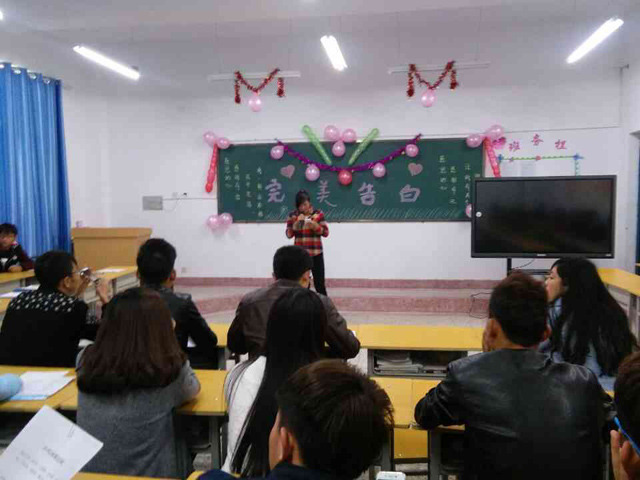2015年11月20日下午,15級農(nóng)村能源與環(huán)境技術(shù)大專班以感恩父母為主題在明德樓103教室舉行光伏社會化技能課程實踐活動—《完美告白》。參加本次活動的人員有:胡建宏老師、15級農(nóng)村能源與環(huán)境技術(shù)大專班和15級光伏材料大專班全體學(xué)生。