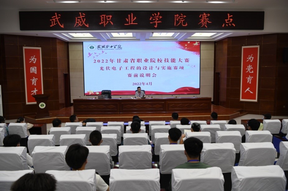 4月26日,2022年甘肅省職業(yè)院校技能大賽高職學生組“光伏電子工程的設(shè)計與實施賽項”成功在我校舉行。本次大賽由甘肅省教育廳、甘肅省人力資源和社會保障廳、甘肅省財政廳、甘肅省衛(wèi)生健康委員會、甘肅省總工會聯(lián)合主辦,武威職業(yè)學院是主要賽點之一,共承辦四個賽項。來自全省9所高職院校的15組共計45名選手參加了光伏電子工程的設(shè)計與實施賽項,互相切磋技能,展示工匠風采。