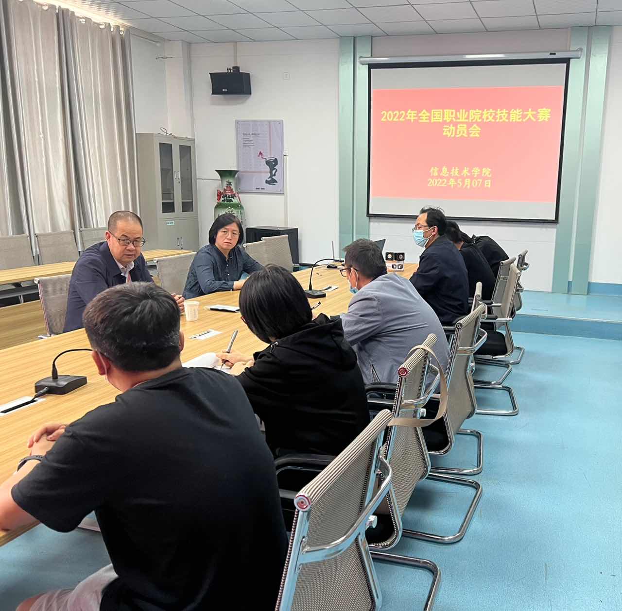為貫徹落實(shí)“技能甘肅”“技能武威”工作任務(wù),全力以赴推進(jìn)學(xué)校高質(zhì)量發(fā)展,加強(qiáng)學(xué)生技能水平,全力做好2022年全國(guó)職業(yè)院校技能大賽備賽工作,5月7日,2022年全國(guó)職業(yè)院校技能大賽動(dòng)員會(huì)在信息技術(shù)學(xué)院明德樓409會(huì)議室召開。學(xué)校黨委副書記翟存祥、信息技術(shù)學(xué)院院長(zhǎng)李亞梅、2個(gè)國(guó)賽參賽隊(duì)的全體指導(dǎo)老師和學(xué)生參加本次會(huì)議。