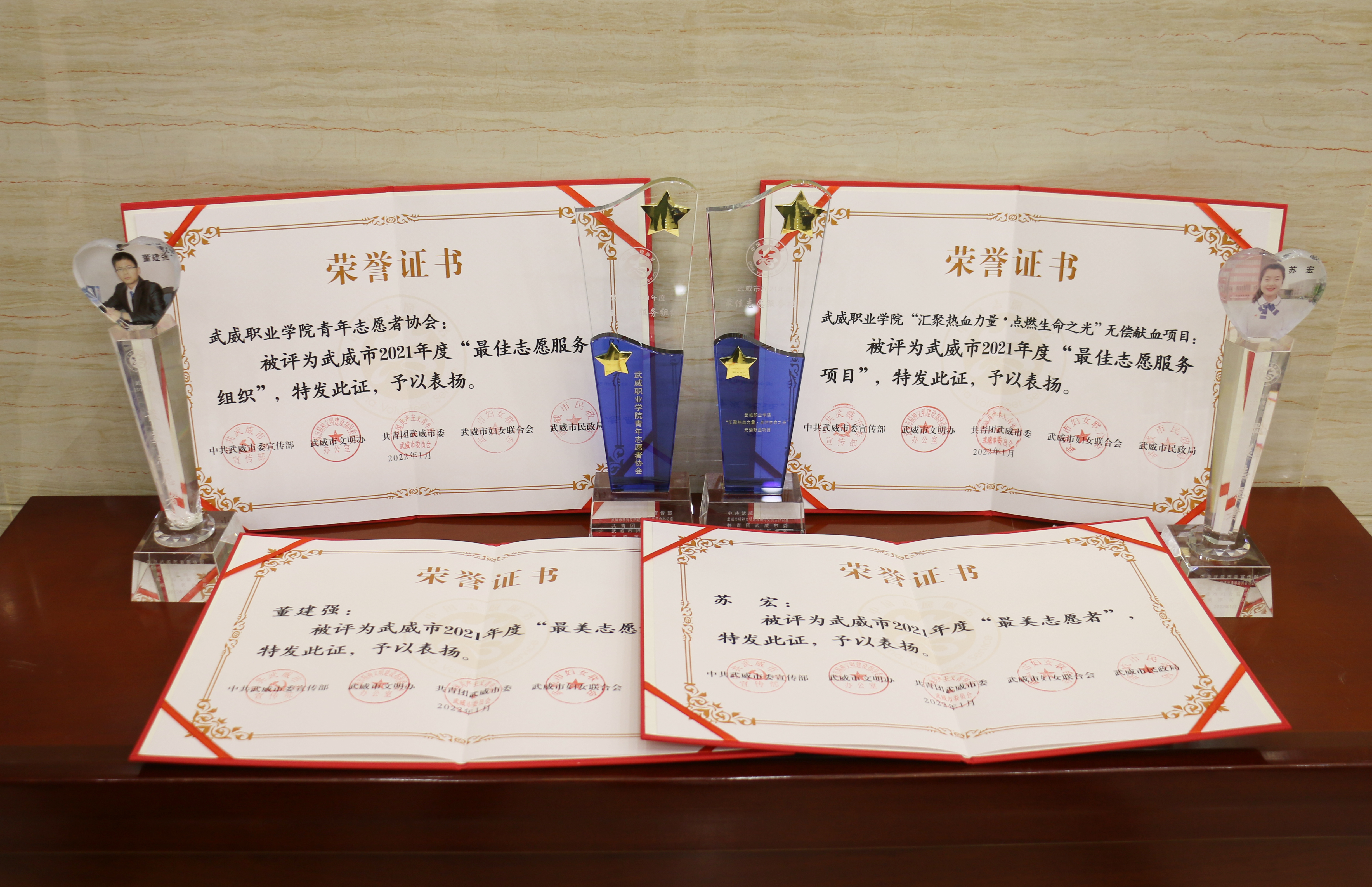 啟動(dòng)儀式上,對(duì)獲得武威市2021年度“最美志愿者”“最佳志愿服務(wù)組織”“最佳志愿服務(wù)項(xiàng)目”“最美志愿服務(wù)社區(qū)”稱號(hào)的集體和個(gè)人頒發(fā)了證書和獎(jiǎng)杯。我校青年志愿者協(xié)會(huì)獲得“最佳志愿服務(wù)組織”榮譽(yù)稱號(hào),“匯聚熱血力量·點(diǎn)燃生命之光”無(wú)償獻(xiàn)血志愿服務(wù)項(xiàng)目獲得“最佳志愿服務(wù)項(xiàng)目”榮譽(yù)稱號(hào),兩名師生獲得“最美志愿者”榮譽(yù)稱號(hào)。