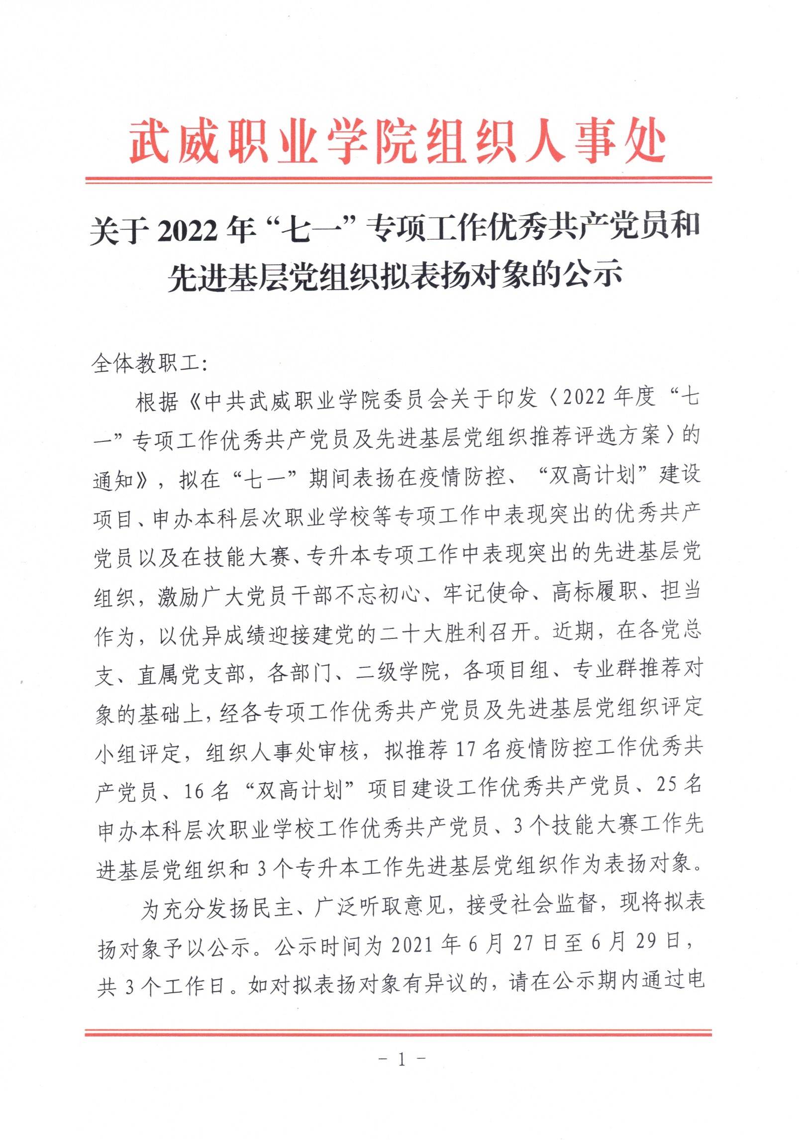 關(guān)于2022年“七一”專項工作優(yōu)秀共產(chǎn)黨員和先進基層黨組織擬表揚對象的公示