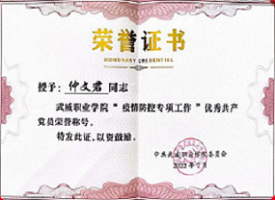 經(jīng)個人申報、學(xué)院推薦、學(xué)校審核,我院仲文君同志榮獲“疫情防控專項工作”優(yōu)秀共產(chǎn)黨員榮譽稱號,李玉榮同志榮獲“雙高計劃建設(shè)項目專項工作”優(yōu)秀共產(chǎn)黨員榮譽稱號,申賓德同志榮獲“申辦本科層次職業(yè)學(xué)校專項工作”優(yōu)秀共產(chǎn)黨員榮譽稱號。