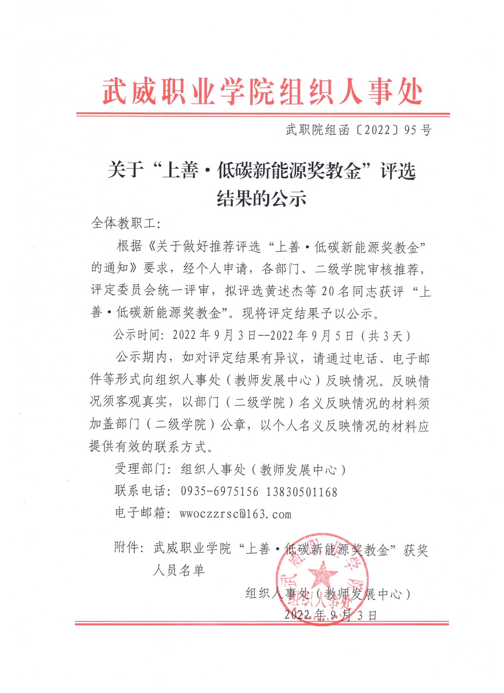 關(guān)于“上善·低碳新能源獎(jiǎng)教金”評(píng)選結(jié)果的公示