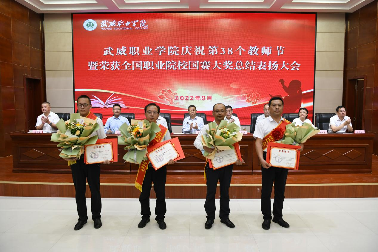 黨委副書記翟存祥對全國職業(yè)院校技能大賽武威職業(yè)學(xué)院代表隊參賽情況進行了總結(jié)并宣讀了獲得全國職業(yè)院校技能大賽獲獎指導(dǎo)教師名單及支持團隊建設(shè)經(jīng)費的決定。李海峰向國賽獲獎指導(dǎo)教師和2022年市級優(yōu)秀教育工作者、優(yōu)秀教師、優(yōu)秀班主任頒發(fā)證書并發(fā)放慰問金。