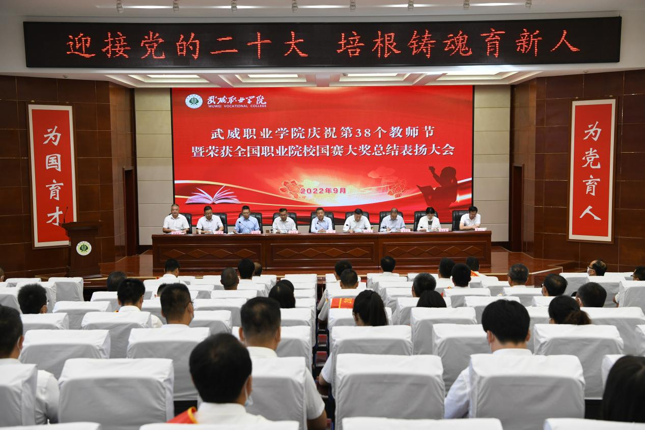 9月7日,學(xué)校慶祝第38個教師節(jié)暨榮獲全國職業(yè)院校國賽大獎總結(jié)表揚大會在菁英廳隆重舉行。中科院先進核能創(chuàng)新研究院高級技術(shù)顧問、教育顧問,原華東理工大學(xué)副校長、武威職業(yè)學(xué)院中科低碳新能源技術(shù)學(xué)院院長、教授楊存忠,武威市教育局黨組成員、副局長李海峰,學(xué)校領(lǐng)導(dǎo)班子成員出席會議,中層以上干部、受表揚教師及學(xué)生代表參加會議。大會由黨委書記、校長趙明主持。