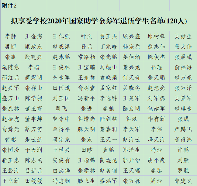 關(guān)于補(bǔ)發(fā)退役學(xué)生專項(xiàng)助學(xué)金的公示