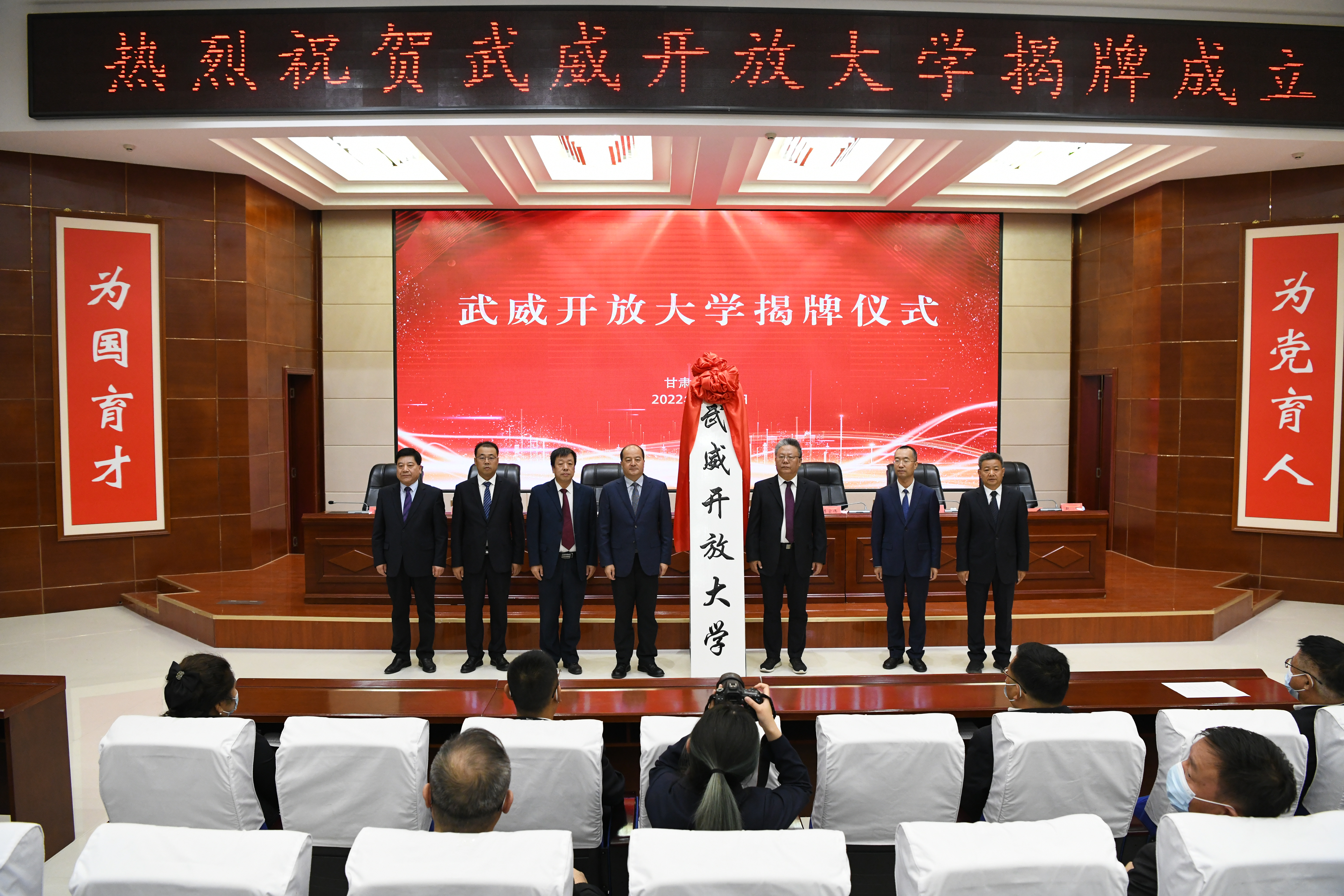 2022年9月28日,武威開放大學(xué)揭牌儀式在武威職業(yè)學(xué)院菁英廳順利舉行,標志著有43年辦學(xué)歷程的甘肅廣播電視大學(xué)武威分校正式更名轉(zhuǎn)型為武威開放大學(xué),開啟了武威開放大學(xué)改革發(fā)展的新征程。