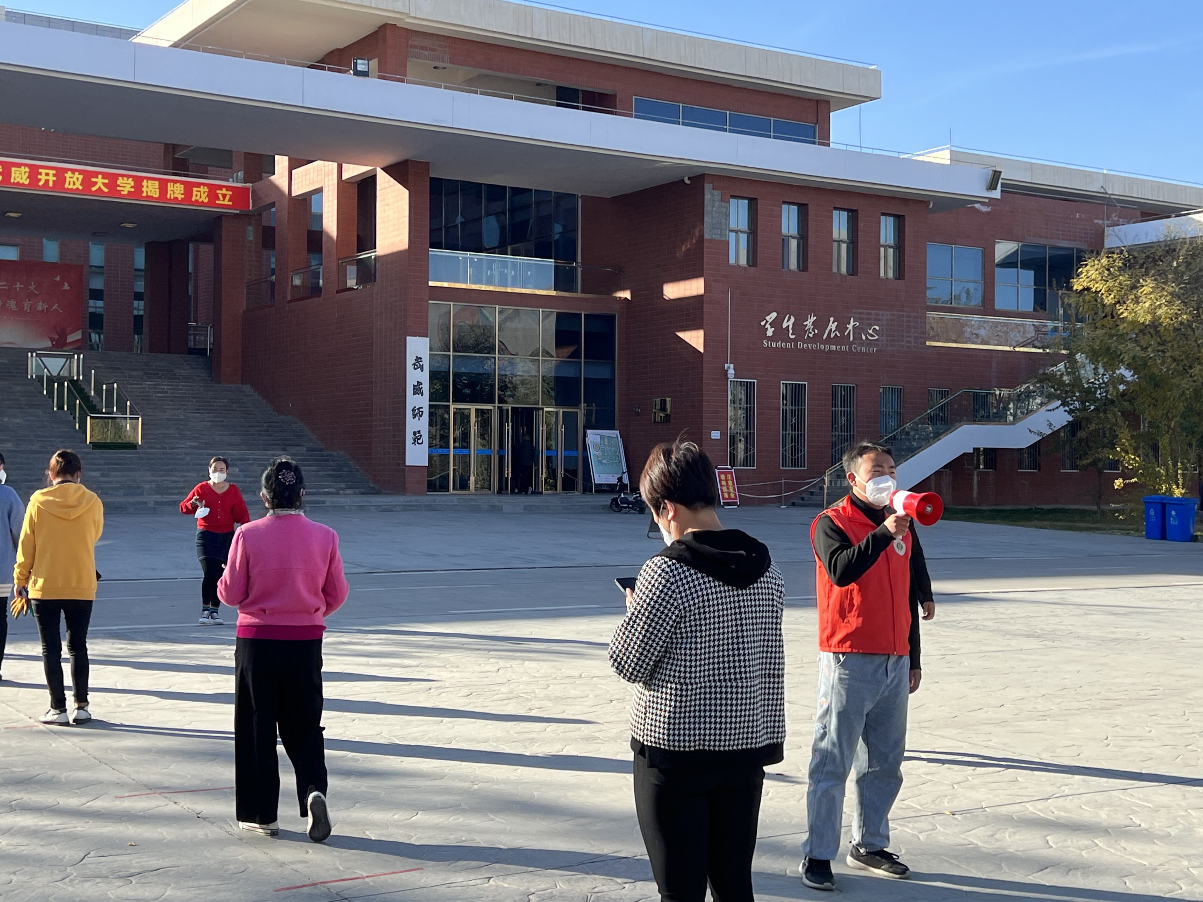 “您好,請測量體溫、掃場所碼。”“請佩戴好口罩,有序排隊……”校學(xué)生會的陶玲在學(xué)校食堂門口值班時不停地提醒著進出打飯的同學(xué)們,這也是她參加校園疫情防控以來每天講得最多的話。自10月13日涼州區(qū)實施臨時管控以來,學(xué)校各學(xué)生組織聞令而動,身穿“藍馬甲”積極投身校園疫情防控一線,用奉獻溫暖了這個秋天。