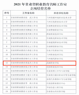? 中科低碳新能源技術學院黃述杰負責的“甘肅省職業(yè)教育黃述杰工作室”獲評甘肅省職業(yè)教育名師工作室。