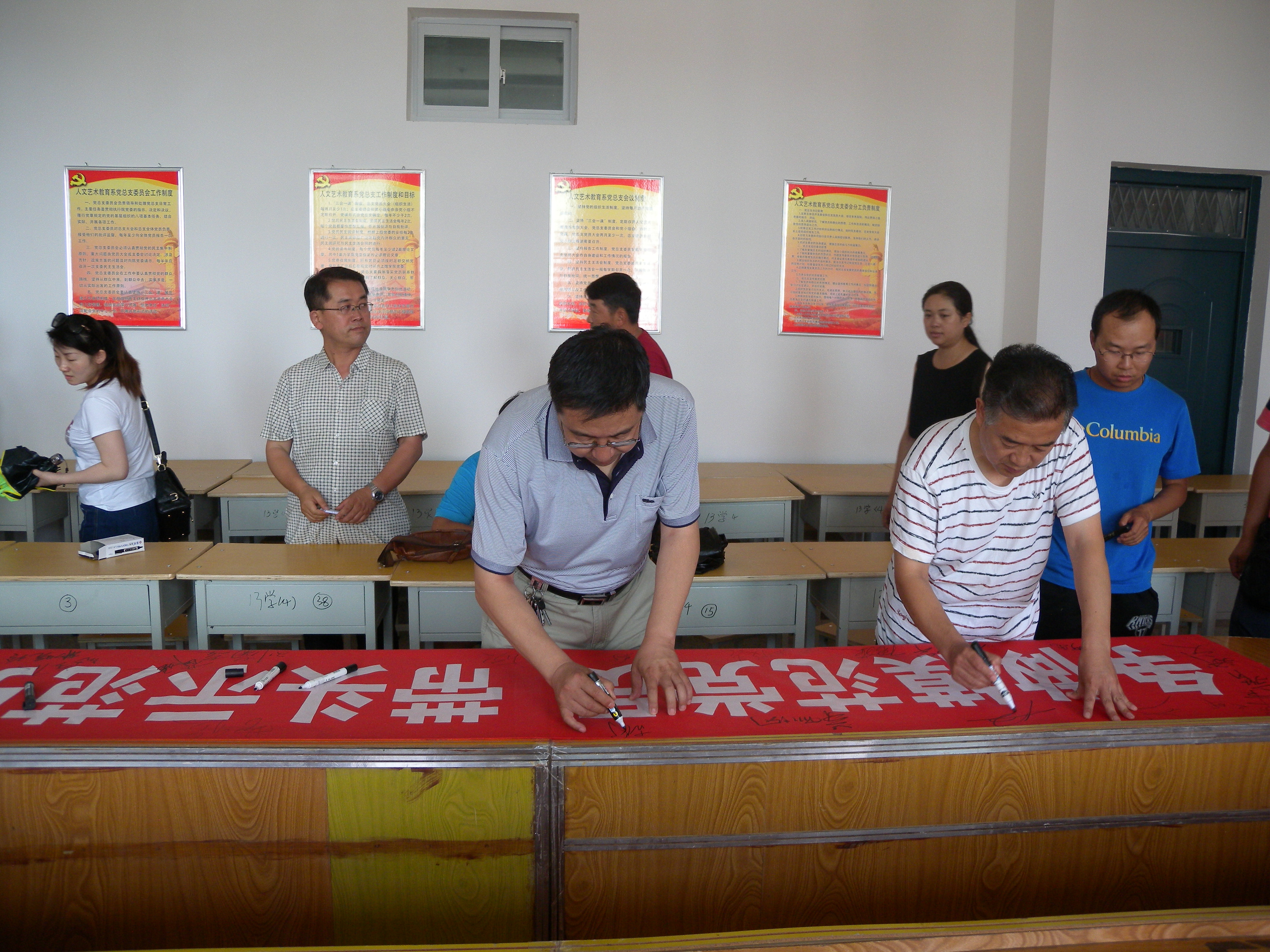 會后,全體師生黨員在“爭做模范黨員,帶頭示范引領”的橫幅上進行了簽名活動。本次簽名活動,旨在發(fā)揮“一個黨員就是一面旗幟”的帶頭示范引領作用,激勵廣大黨員做“兩學一做”的忠實踐行者,使“兩學一做”學習教育取得實實在在的成效。
