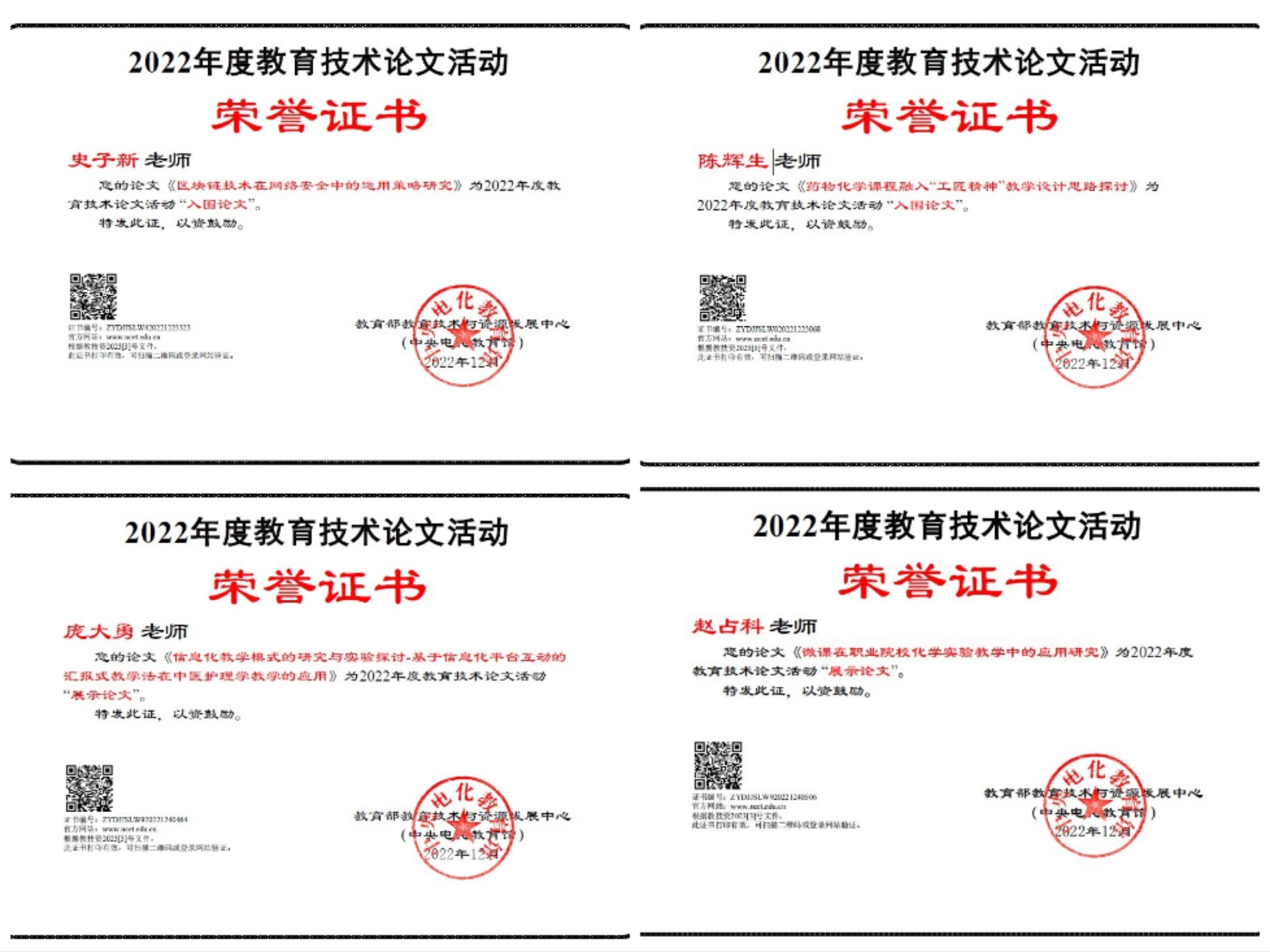近日,教育部教育技術(shù)與資源發(fā)展中心(中央電化教育館)2022年全國師生信息素養(yǎng)提升實踐活動(第二十六屆教師活動)評審結(jié)果出爐。學(xué)校趙占科、龐大勇、史子新、陳輝生四名教師的教育技術(shù)論文被分別評為展示論文和入圍論文,學(xué)校在2022年度教育技術(shù)論文活動組織工作中被評為突出貢獻(xiàn)學(xué)校。