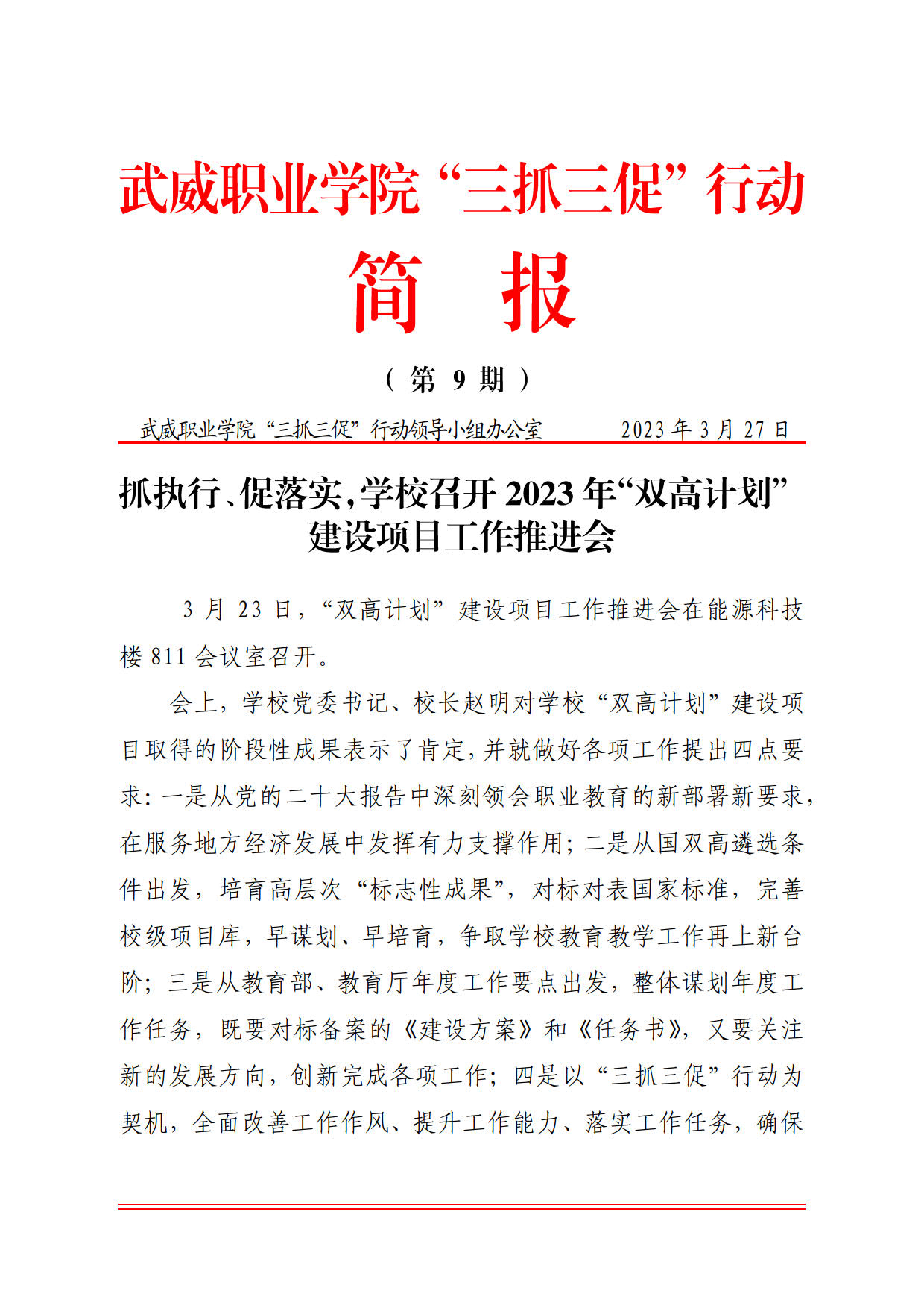 簡(jiǎn)報(bào)第9期:抓執(zhí)行、促落實(shí),學(xué)校召開2023年“雙高計(jì)劃”建設(shè)項(xiàng)目工作推進(jìn)會(huì)