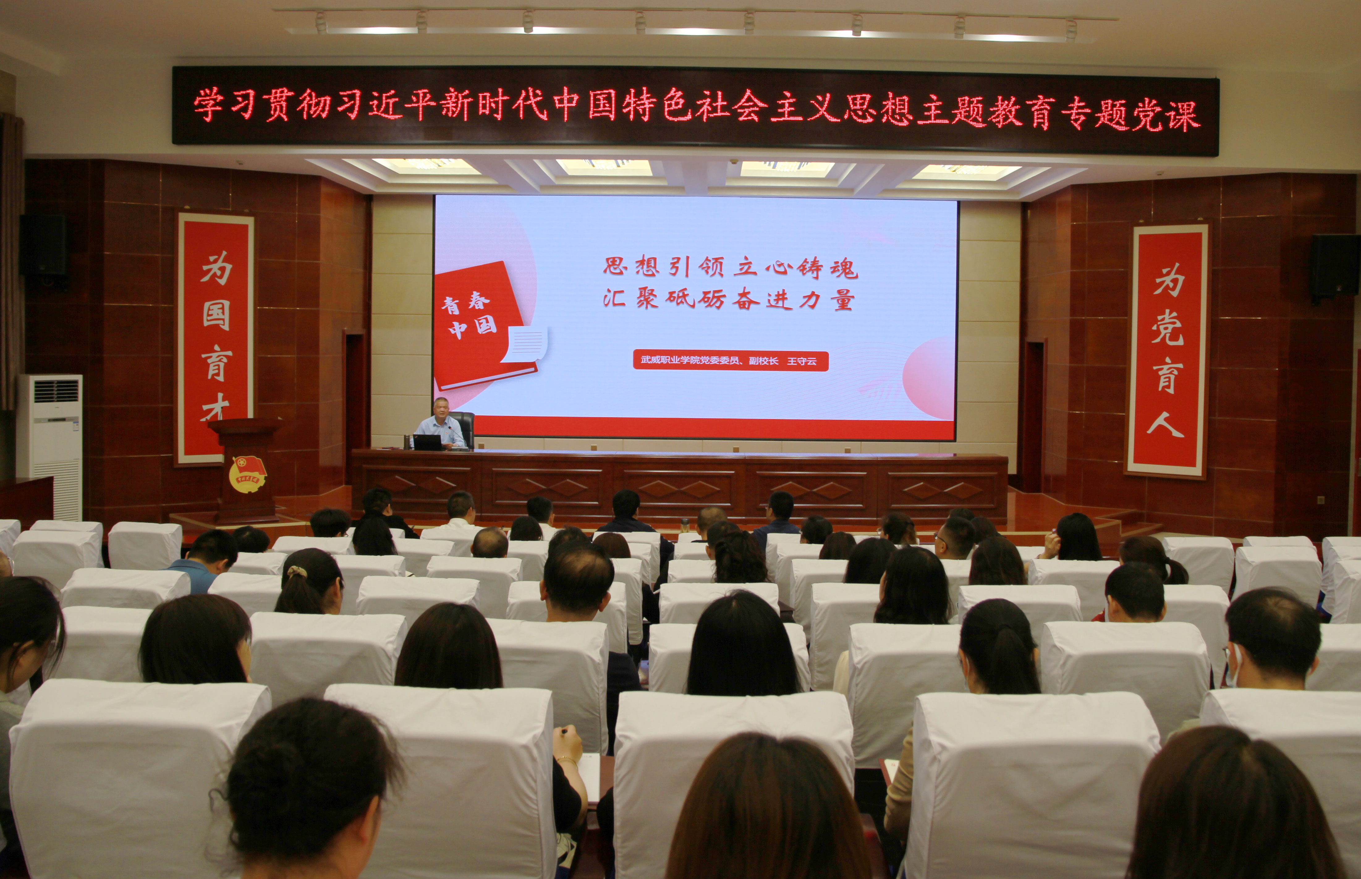 5月30日下午,校黨委委員、副校長王守云以《思想引領(lǐng)立心鑄魂 匯聚砥礪奮進(jìn)力量》為題,結(jié)合個(gè)人學(xué)思踐悟和學(xué)校分管工作,為藝術(shù)與教育學(xué)院和經(jīng)濟(jì)管理學(xué)院全體黨員干部上了一堂精彩生動(dòng)的學(xué)習(xí)貫徹習(xí)近平新時(shí)代中國特色社會(huì)主義思想主題教育黨課。