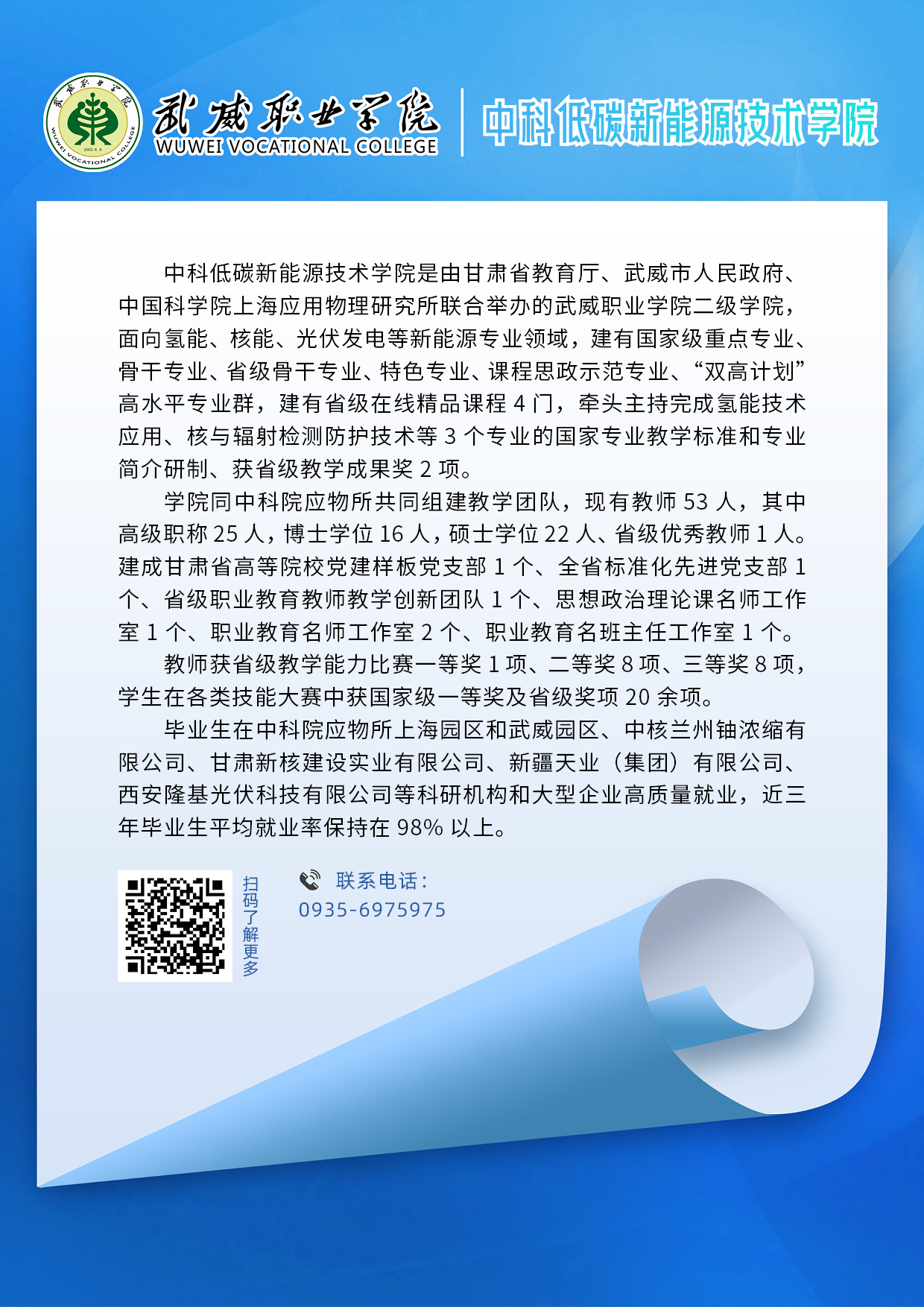 武威職業(yè)學(xué)院二級學(xué)院專業(yè)簡介丨中科低碳新能源…