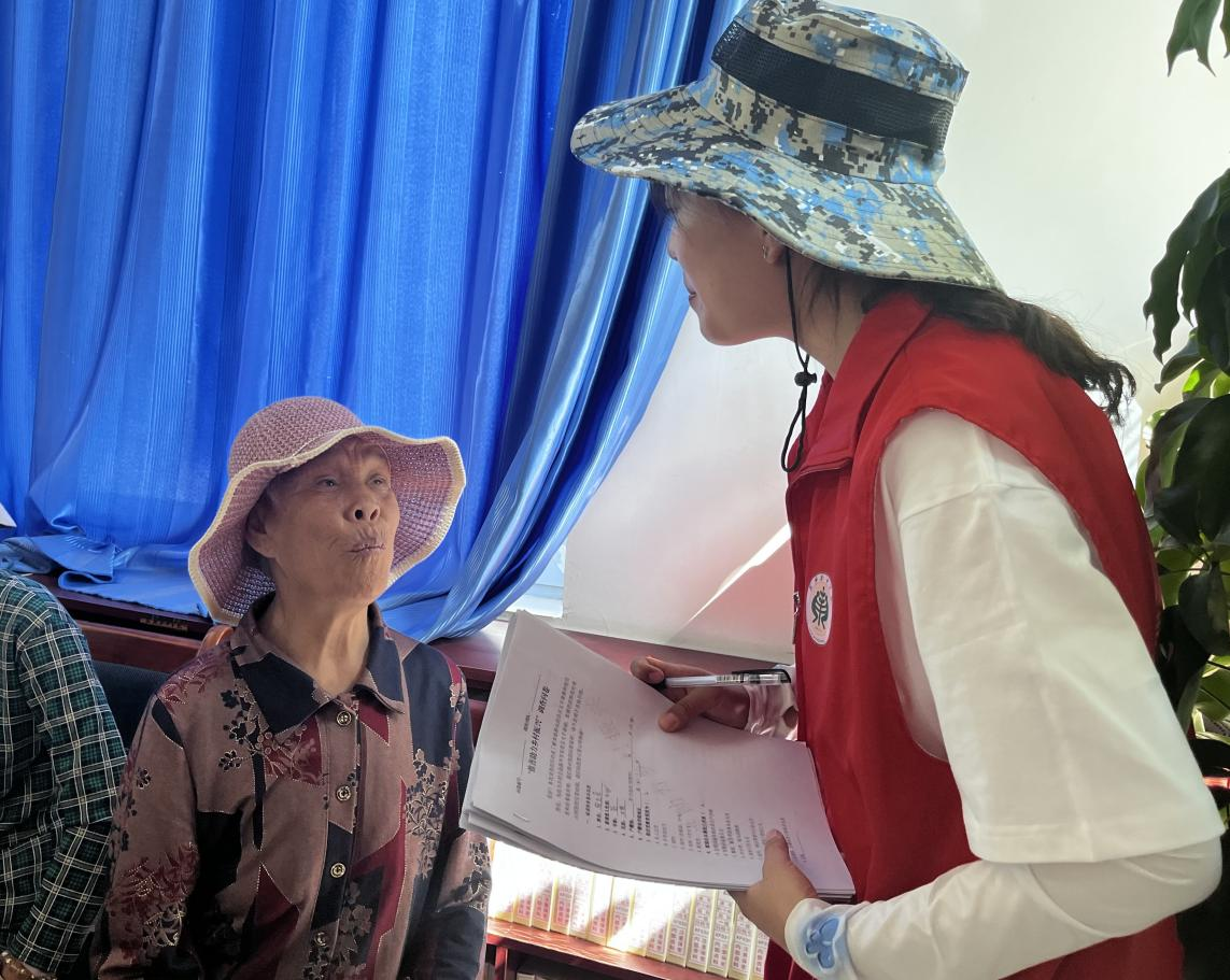圖為實踐隊員對留守婦女普通話使用情況進行調(diào)研