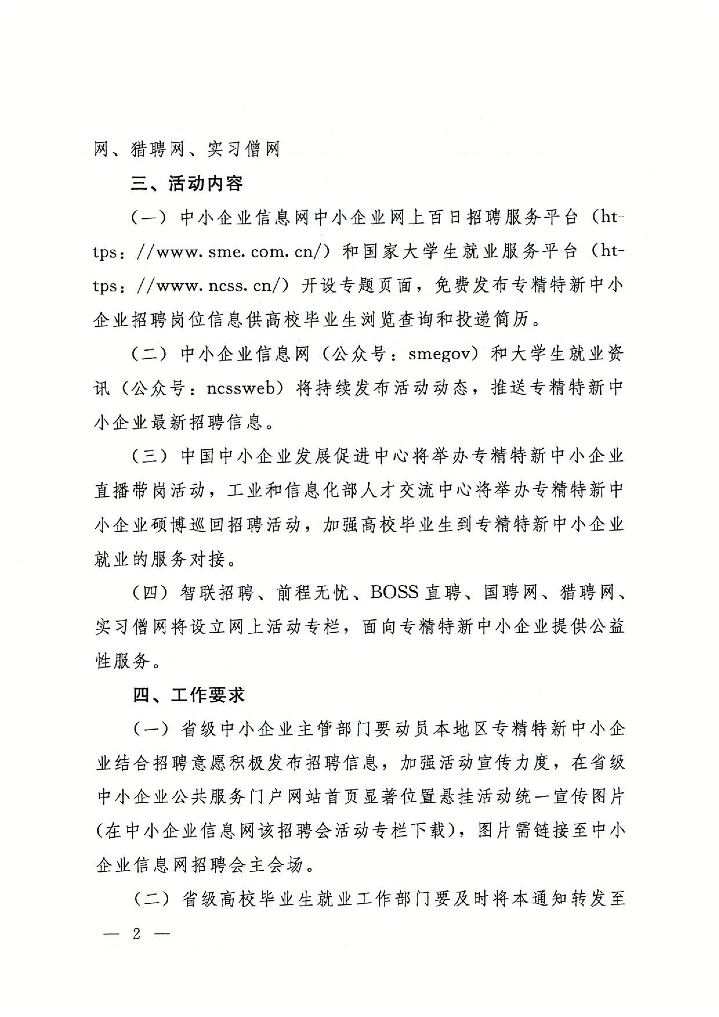 關(guān)于舉辦專精特新中小企業(yè)面向2023屆高校畢業(yè)生網(wǎng)上招聘活動的通知
